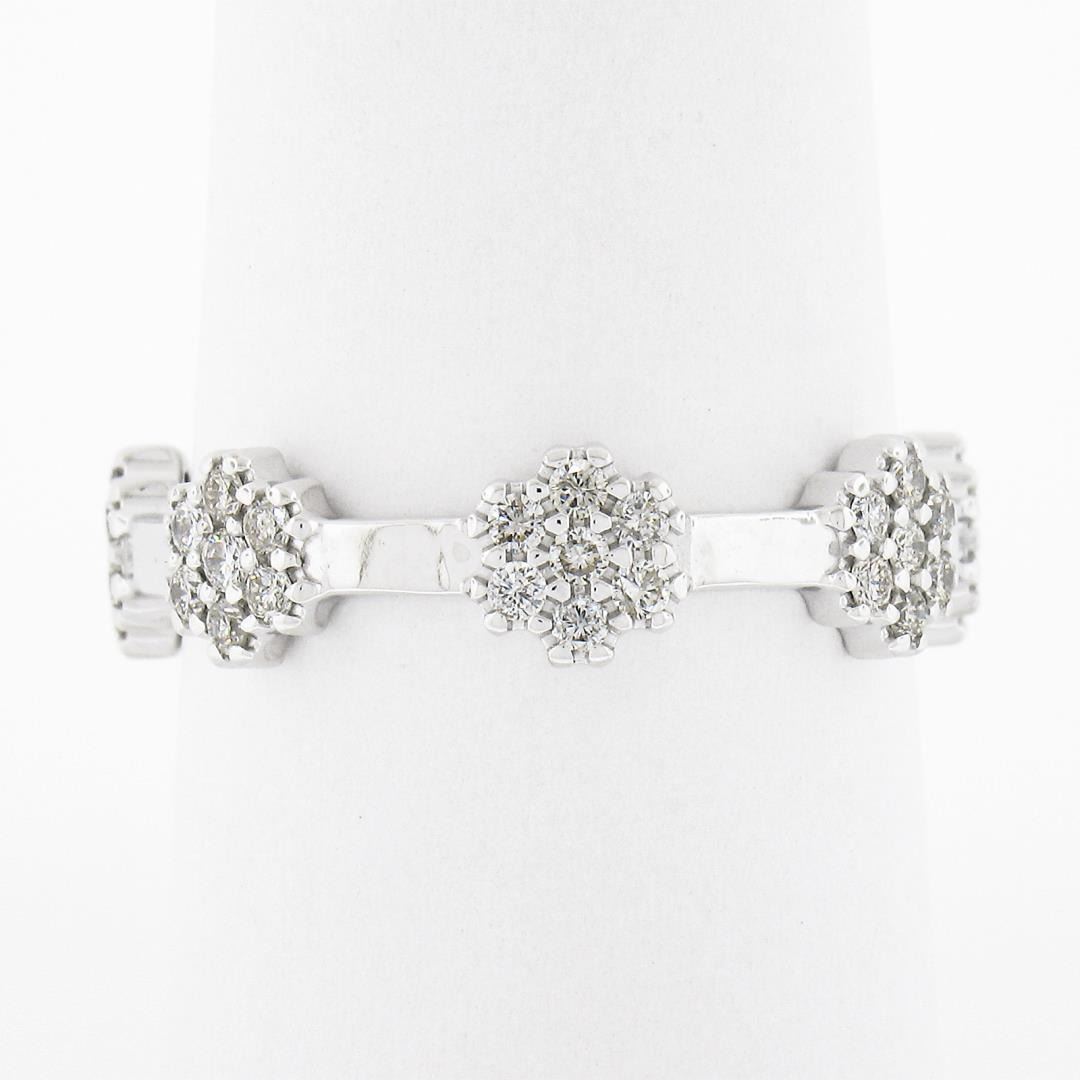 A vintage solid 18k white gold ring, with 49 round brilliant cut natural diamonds (G/I - SI1/I1 ; 0.50ctw). The ring is size 8.0, weighs a total of 3.49 grams, and measures 5.5mm wide.
