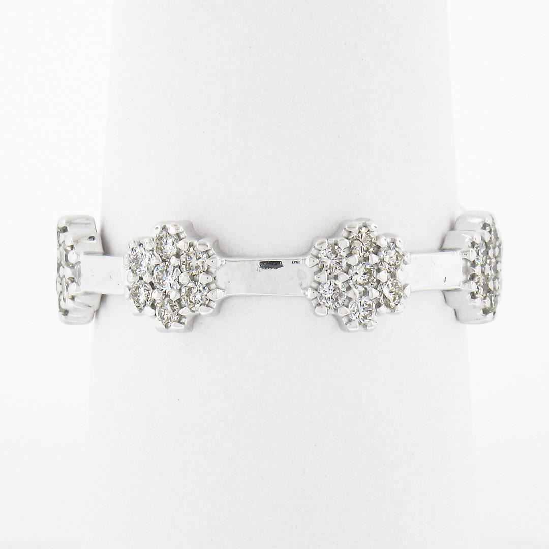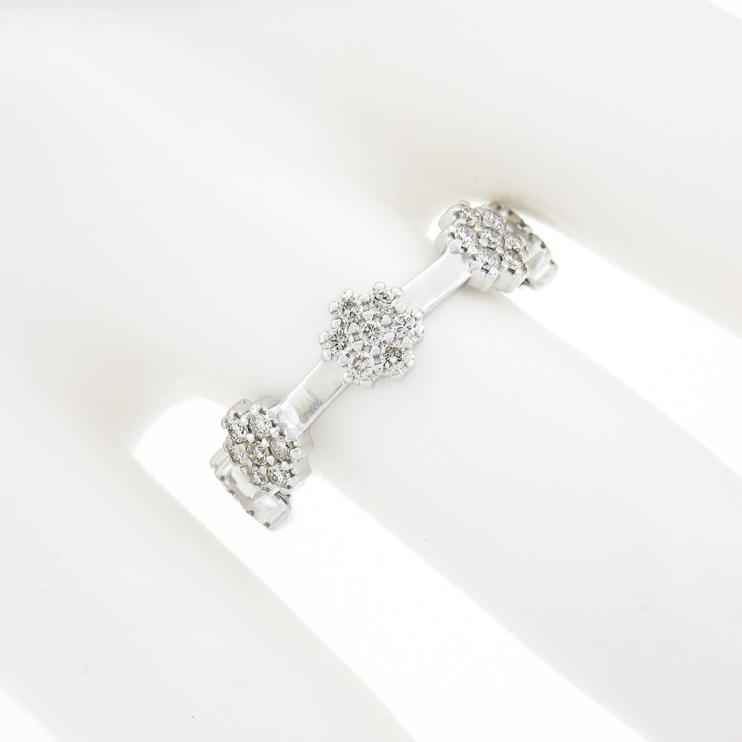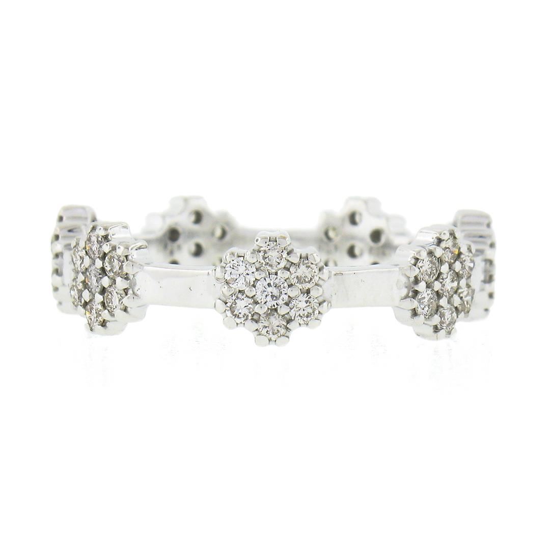 A vintage solid 18k white gold ring, with 49 round brilliant cut natural diamonds (G/I - SI1/I1 ; 0.50ctw). The ring is size 8.0, weighs a total of 3.49 grams, and measures 5.5mm wide.