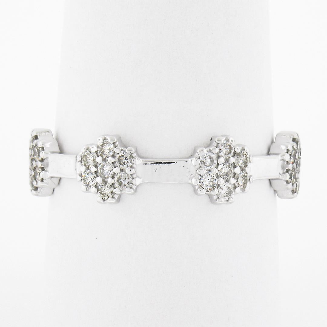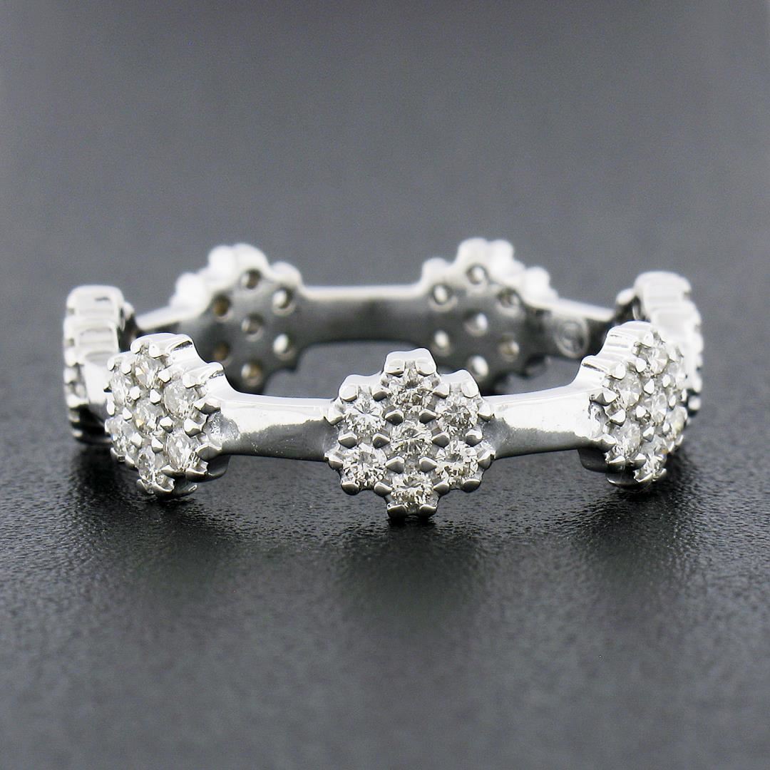 A vintage solid 18k white gold ring, with 49 round brilliant cut natural diamonds (G/I - SI1/I1 ; 0.50ctw). The ring is size 8.0, weighs a total of 3.49 grams, and measures 5.5mm wide.