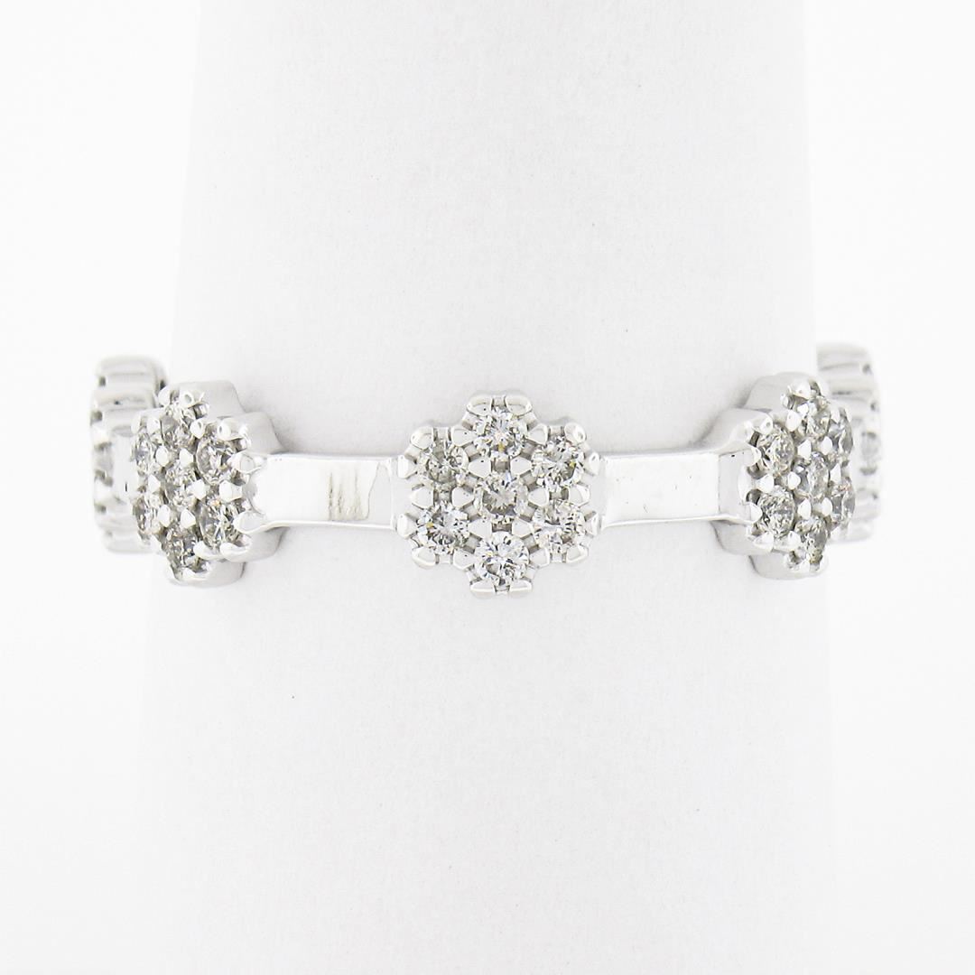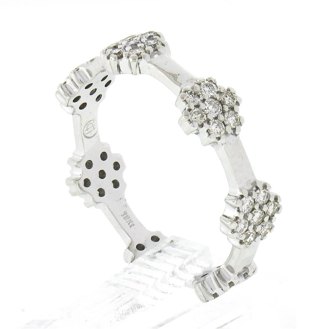A vintage solid 18k white gold ring, with 49 round brilliant cut natural diamonds (G/I - SI1/I1 ; 0.50ctw). The ring is size 8.0, weighs a total of 3.49 grams, and measures 5.5mm wide.