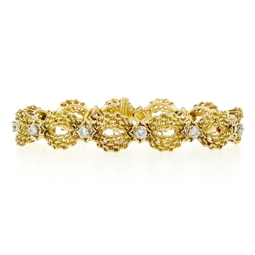 A vintage solid 18k yellow gold puffed link bracelet, with 11 round brillaint cut natral diamonds (F/G - VS1/VS2; 1.51ctw). It weighs a total of 34.50 grams, measures 12.2mm wide, and measures 6.5 inches in length.