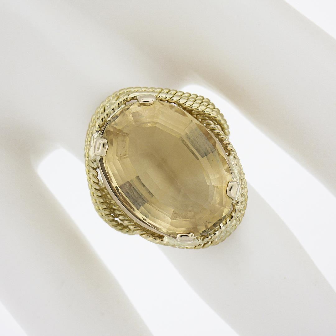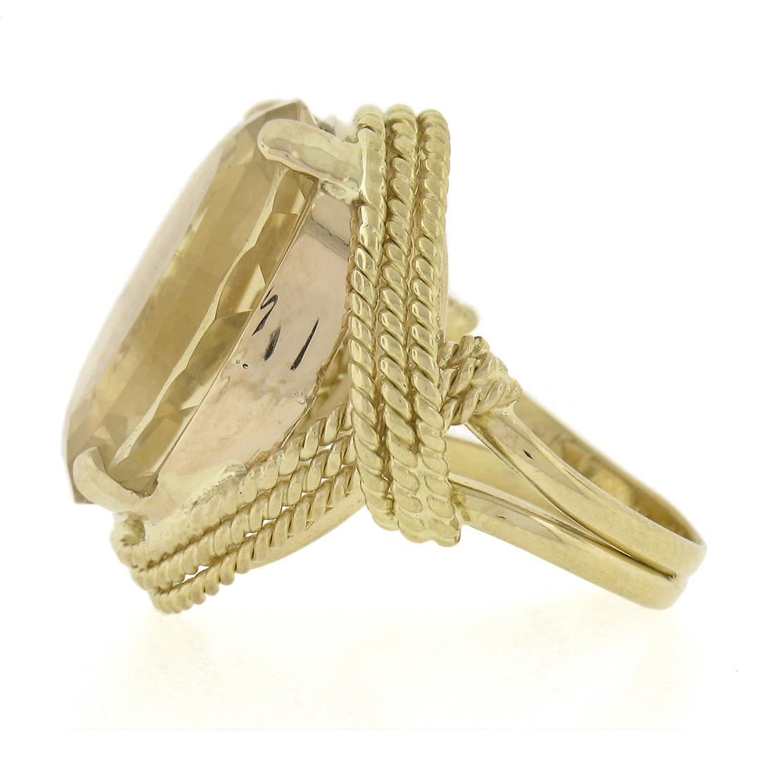 Vintage 18k Gold 10.84ct Oval Citrine Twisted Wire Frame Large Cocktail Ring