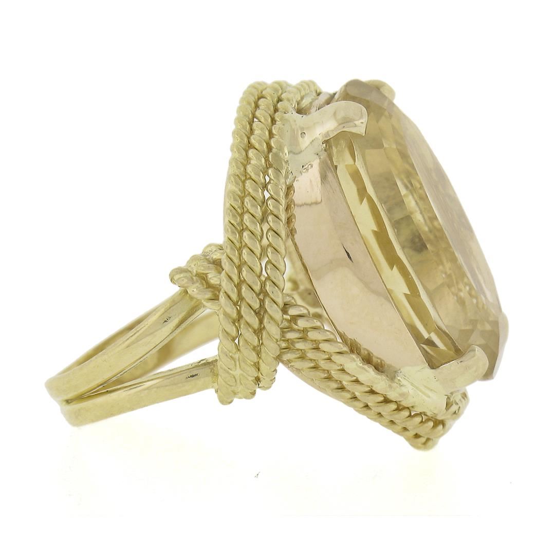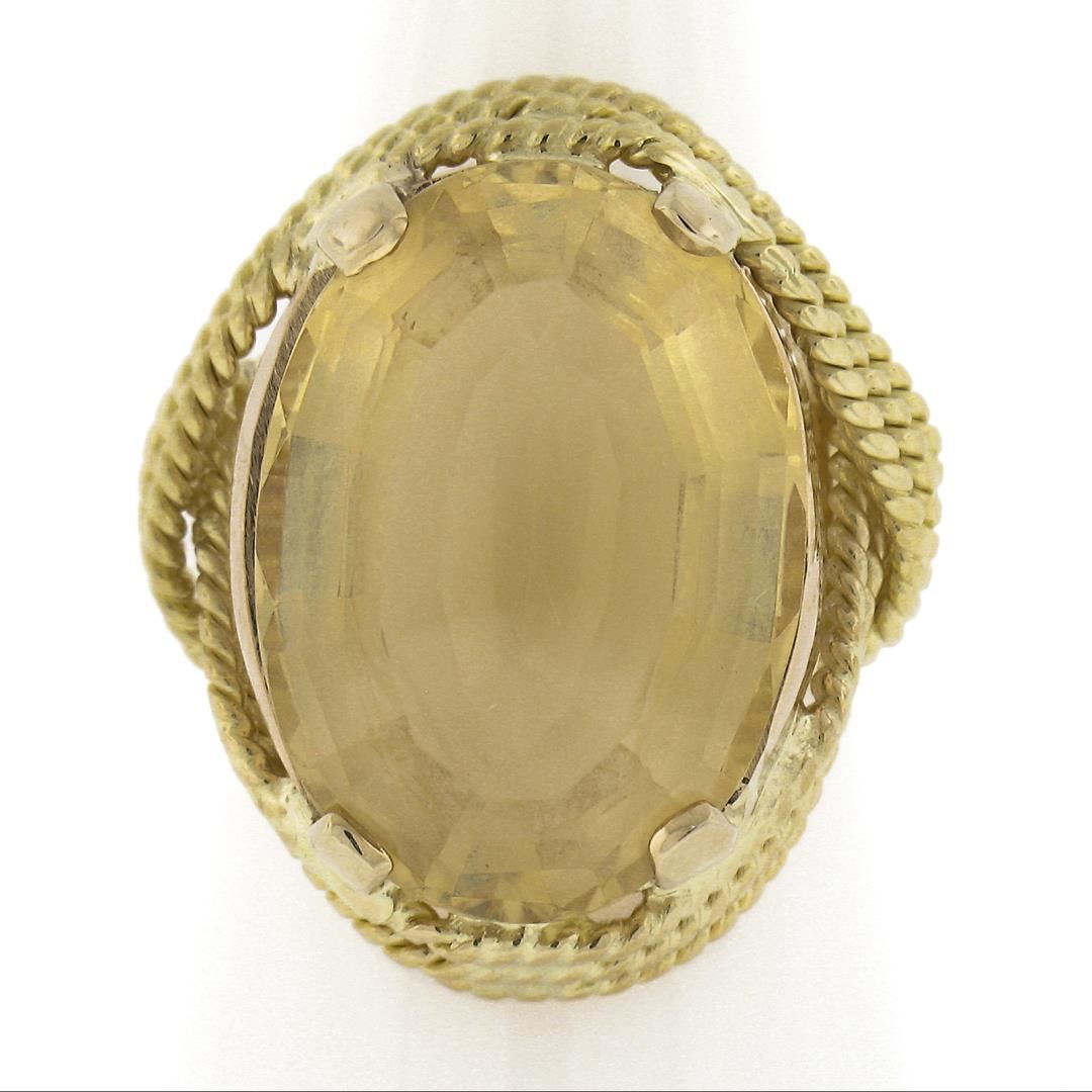 Vintage 18k Gold 10.84ct Oval Citrine Twisted Wire Frame Large Cocktail Ring