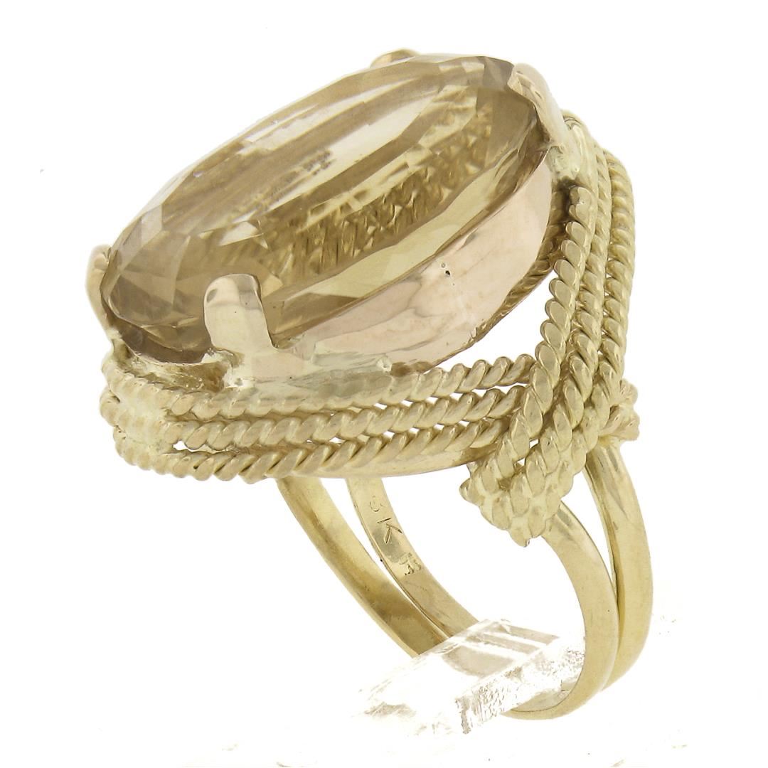 Vintage 18k Gold 10.84ct Oval Citrine Twisted Wire Frame Large Cocktail Ring