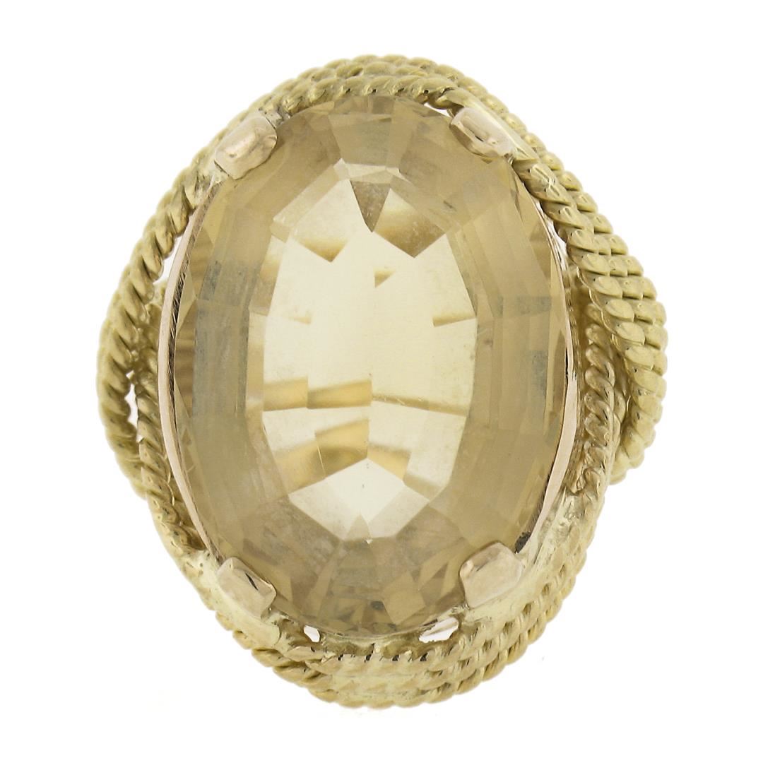 Vintage 18k Gold 10.84ct Oval Citrine Twisted Wire Frame Large Cocktail Ring