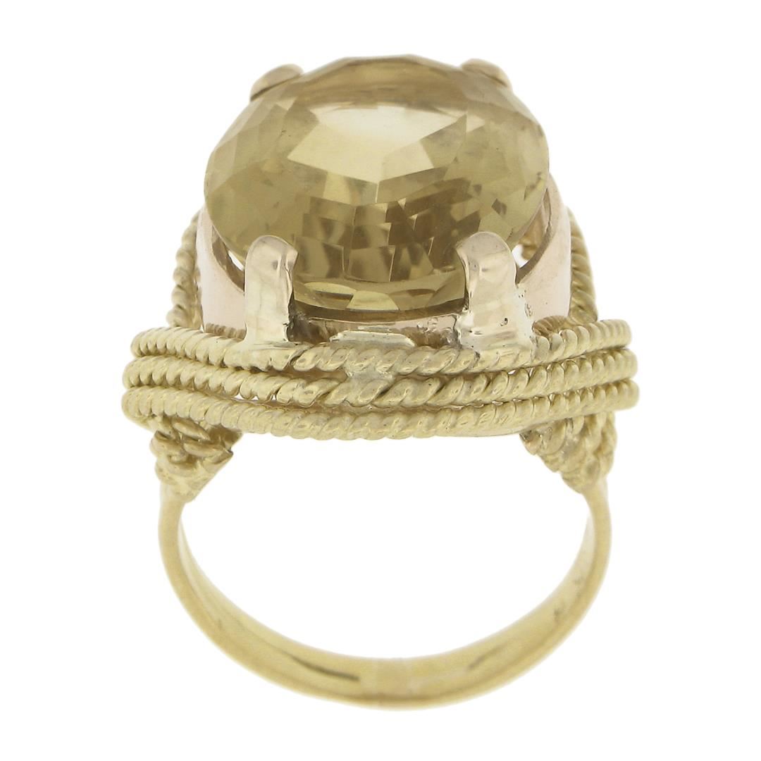 Vintage 18k Gold 10.84ct Oval Citrine Twisted Wire Frame Large Cocktail Ring