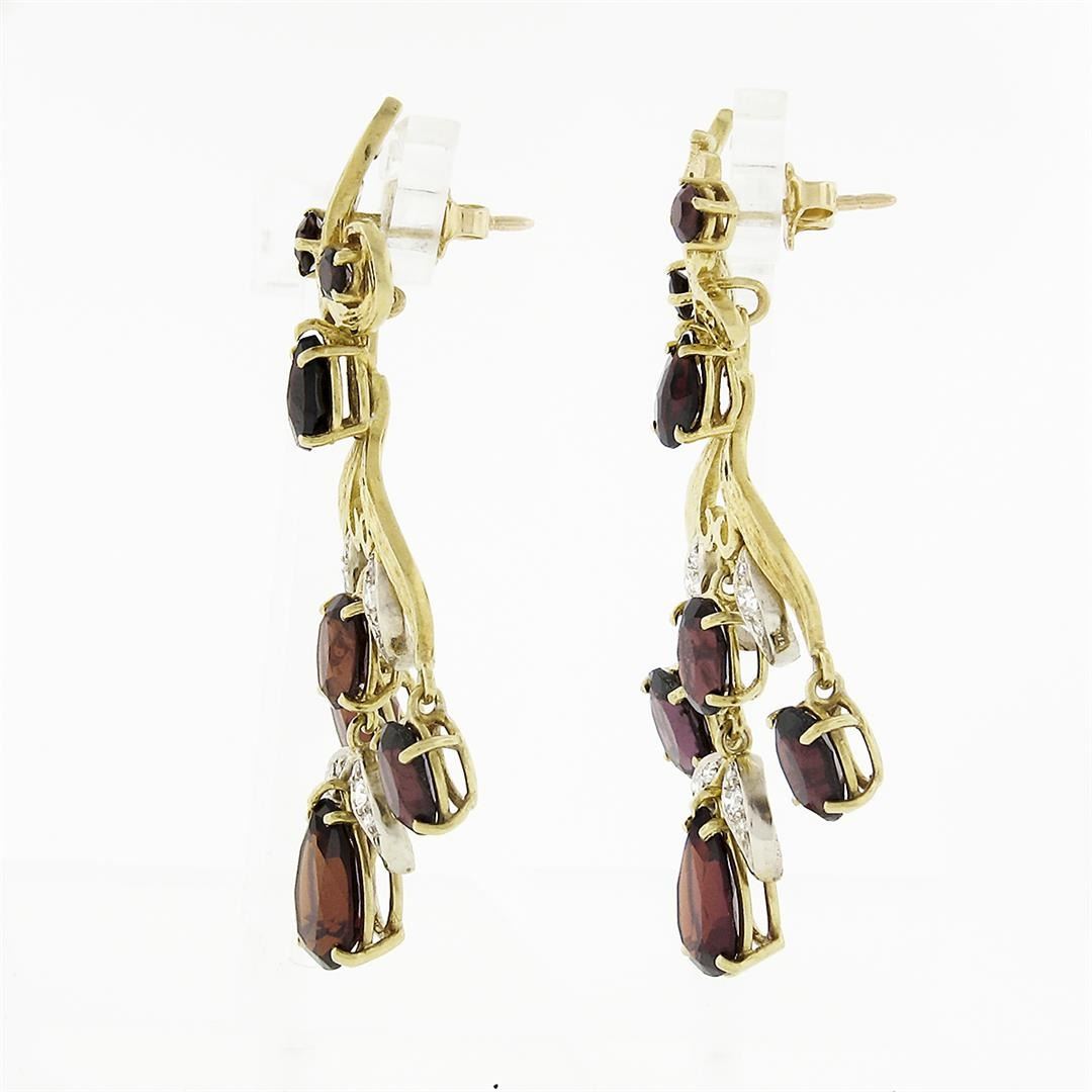 A vintage pair or solid 18k yellow gold of earrings, with 2 GIA certified pear cut natural garnets (4.17ctw), & 6 oval cut natural garnets (5.78ctw), with 2 oval rose cut natural garnets (1.26ctw), & 4 round cut natural garnets (0.52ctw ), & 12 round single with transitional cut natural diamonds (E/F - VS1/VS2 ; 0.18ctw). The earrings measure approximately 49.45x32.22mm and weigh a total of 13.81 grams.Comes with all original relevant certifications.