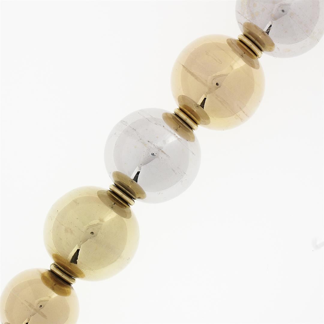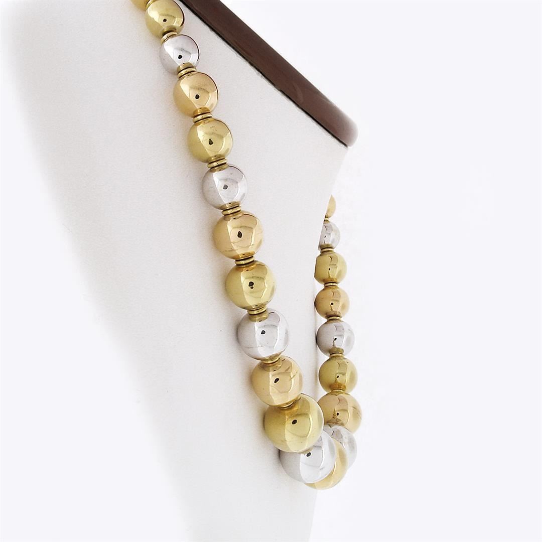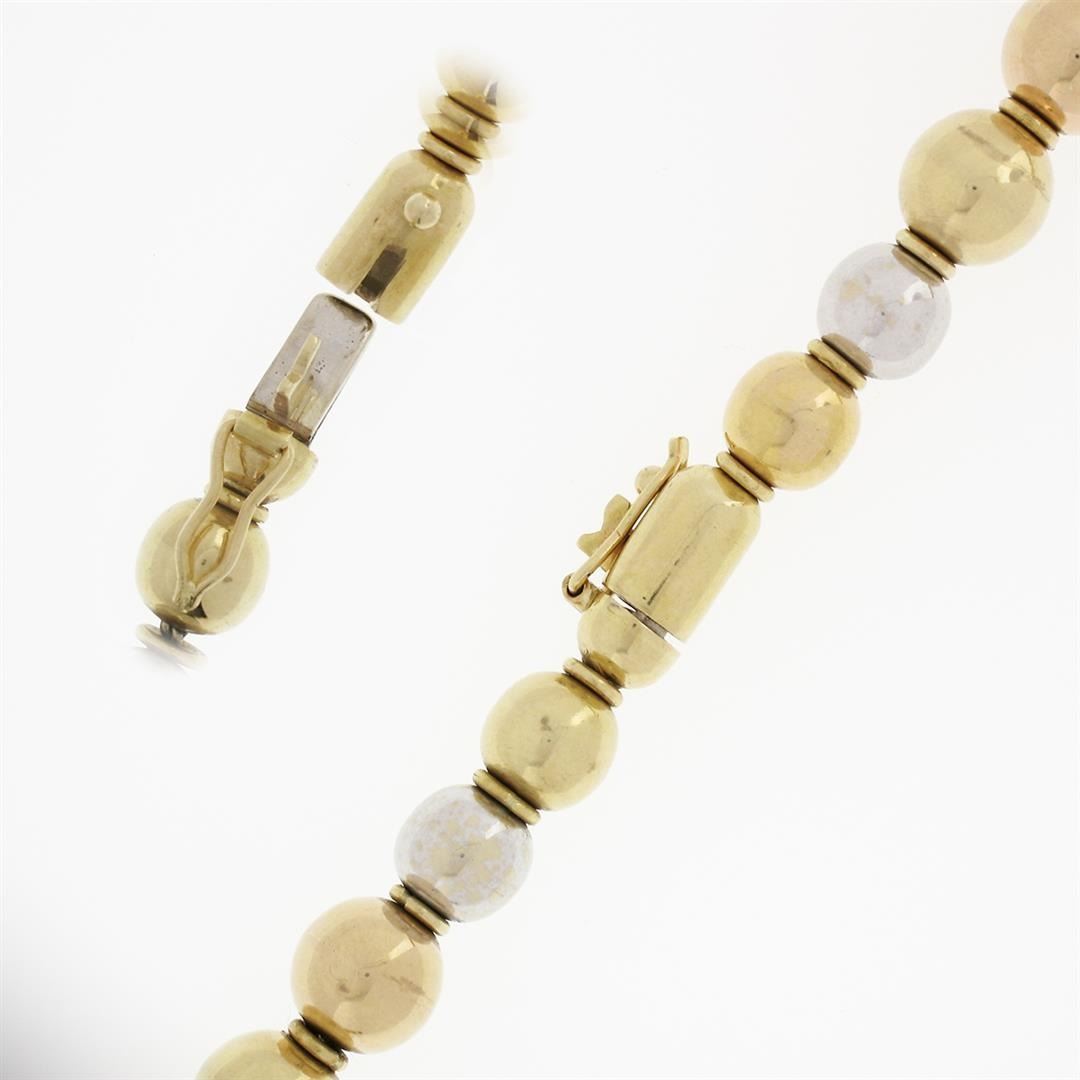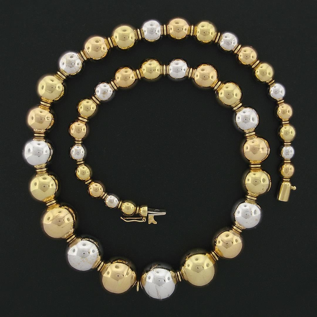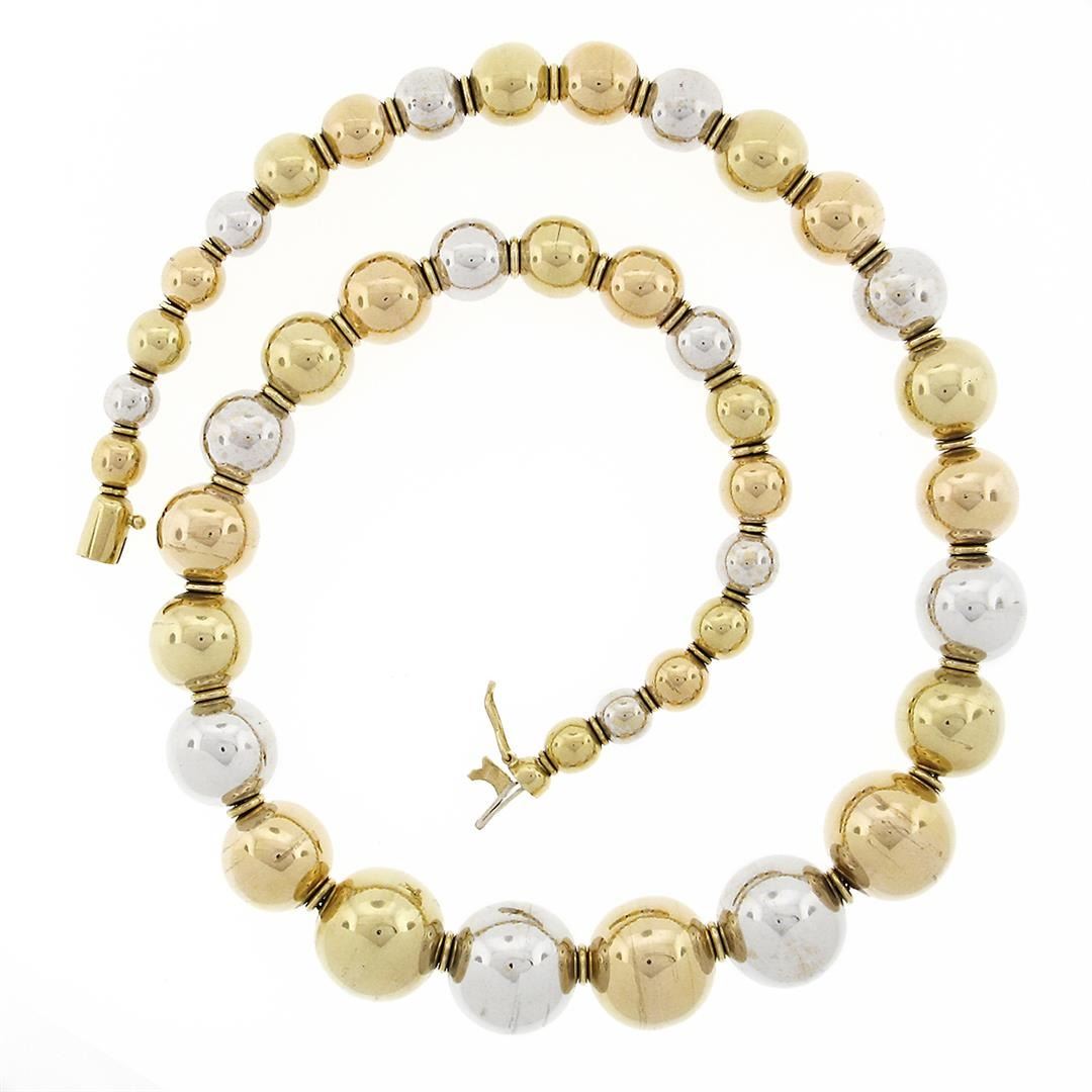 A vintage solid 18k yellow, rose & white gold necklace. 15.5 inch bead strand link chain, 67.90 grams total weight.