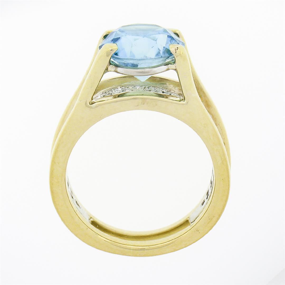 A vintage solid 18k yellow and white gold ring, with 1 Gia certified round brilliant cut blue zircon, and 45 round brilliant cut natural diamonds (G/H - VS1/VS2 ; 0.80ctw). The ring is size 6.25, weighs a total of 11.24 grams, and measures 9.80mm wide. Comes with all original relevant certifications.