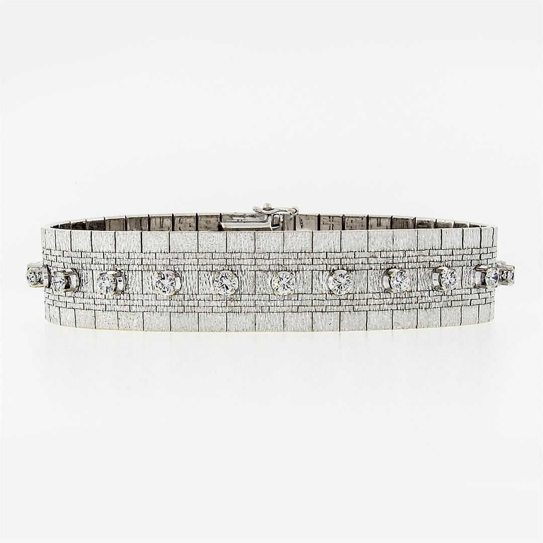 Vintage 18k White Gold 2.40 ctw Round Diamond 15mm Wide Brick Mesh Link Bracelet