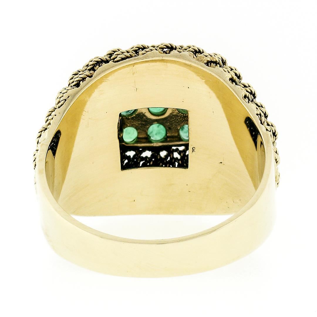 A solid 18k yellow gold dome ring, with 9 round cut natural emeralds (0.72ctw). The ring is size 7.0, weighs a total of 7.67 grams, and measures 16.06mm wide.