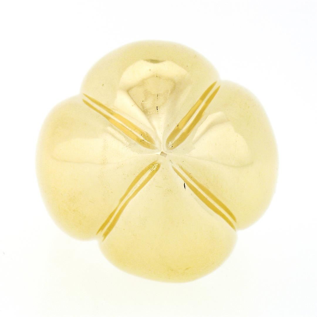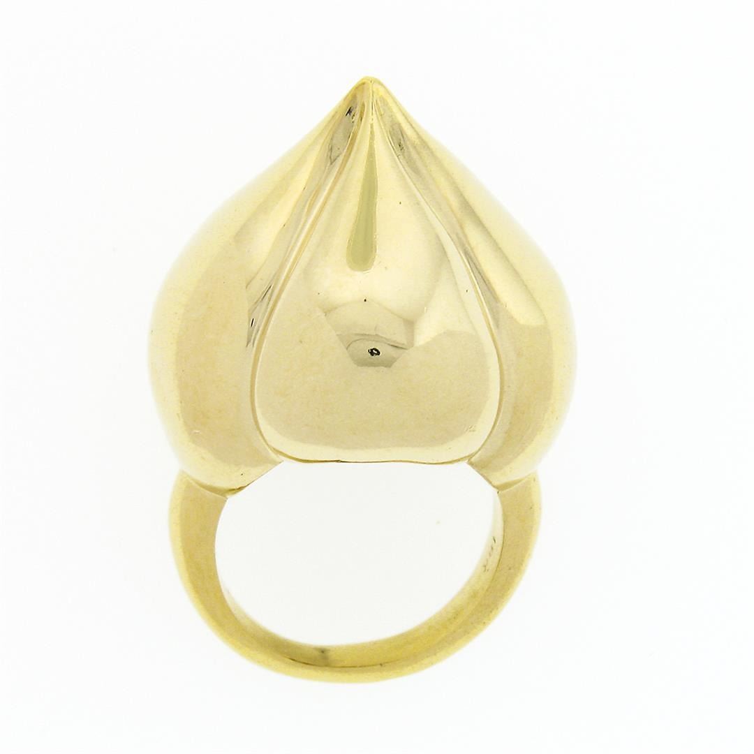 A vintage solid 18k yellow gold grooved ring. The ring is size 5.5, weighs a total of 15.69 grams, and measures 24.30mm wide.
