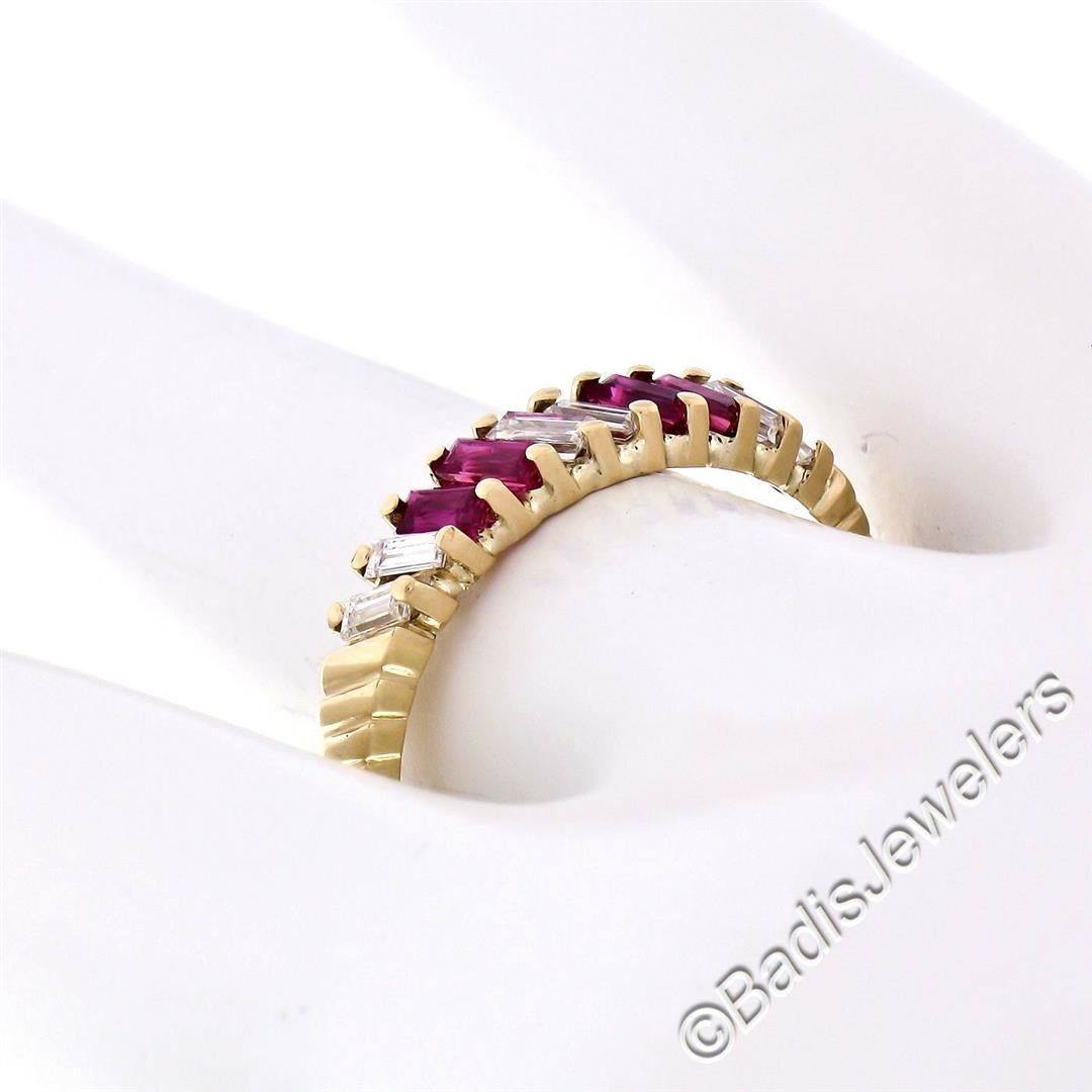 A like new vintage 18kt yellow gold band ring with 0.40ctw of baguette diamonds (F - VS1) and 0.35ctw of baguette rubies. The ring is size 7, weighs a total of 2.54 grams, and measures 3.70mm wide.