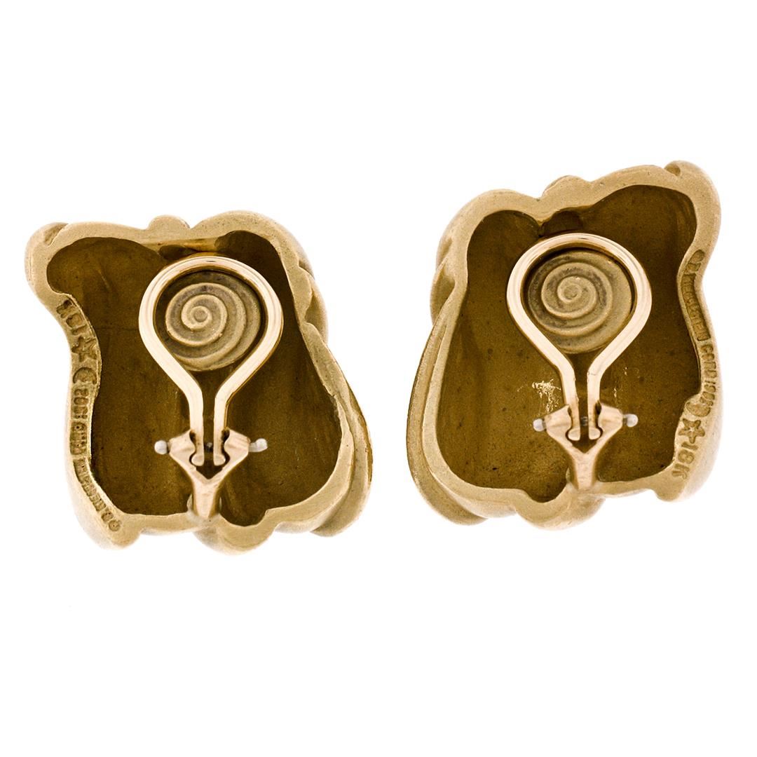 A vintage solid 18k gold pair of wavy clip on earrings by Kieselstein Cord.The earrings measure approximately 23.30x21.20mm and weigh a total of 28.52grams.