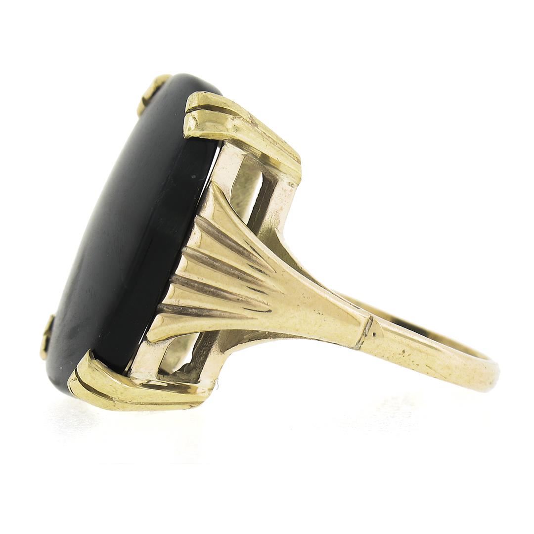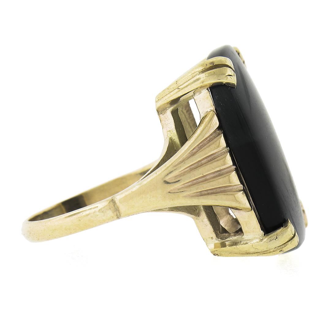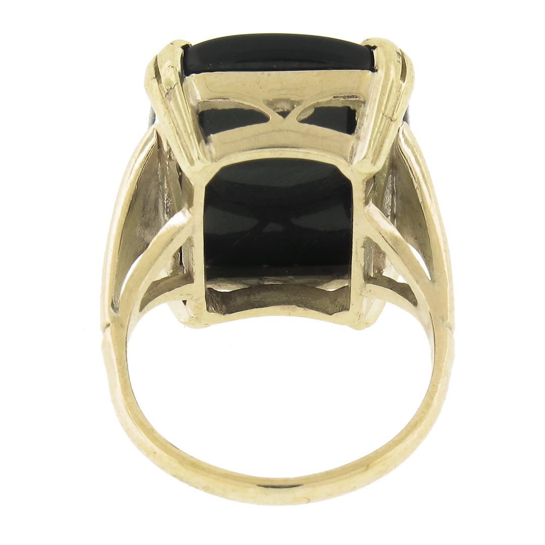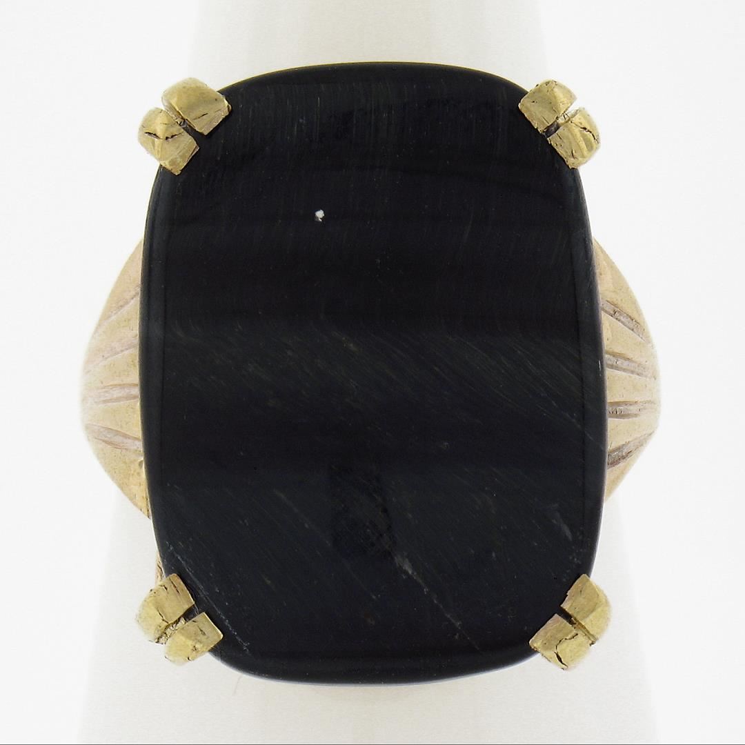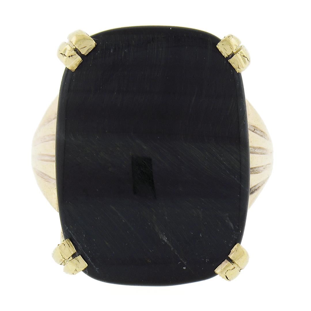 Vintage 9ct Yellow Gold 21.3x15.8mm Flat Cushion Black Agate Solitaire Ring