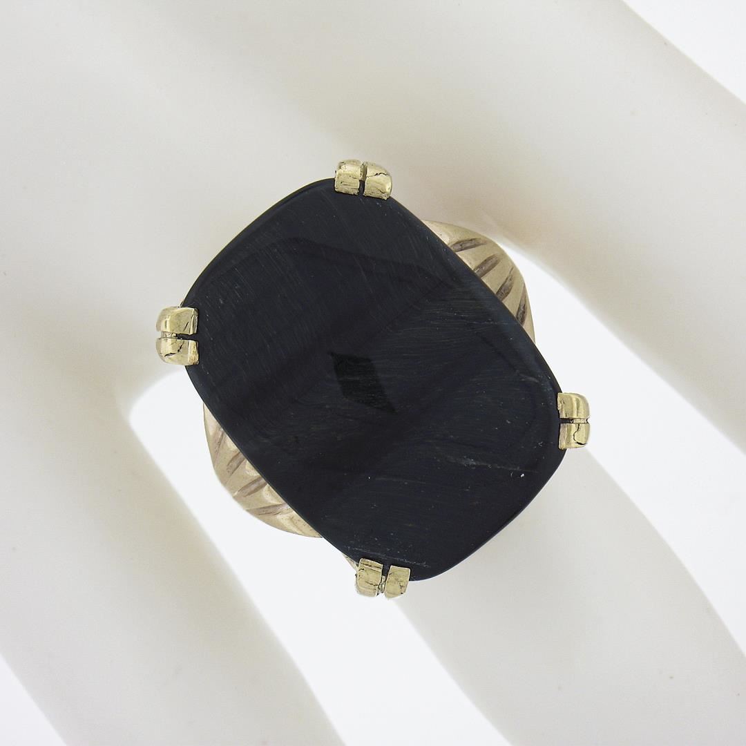 Vintage 9ct Yellow Gold 21.3x15.8mm Flat Cushion Black Agate Solitaire Ring