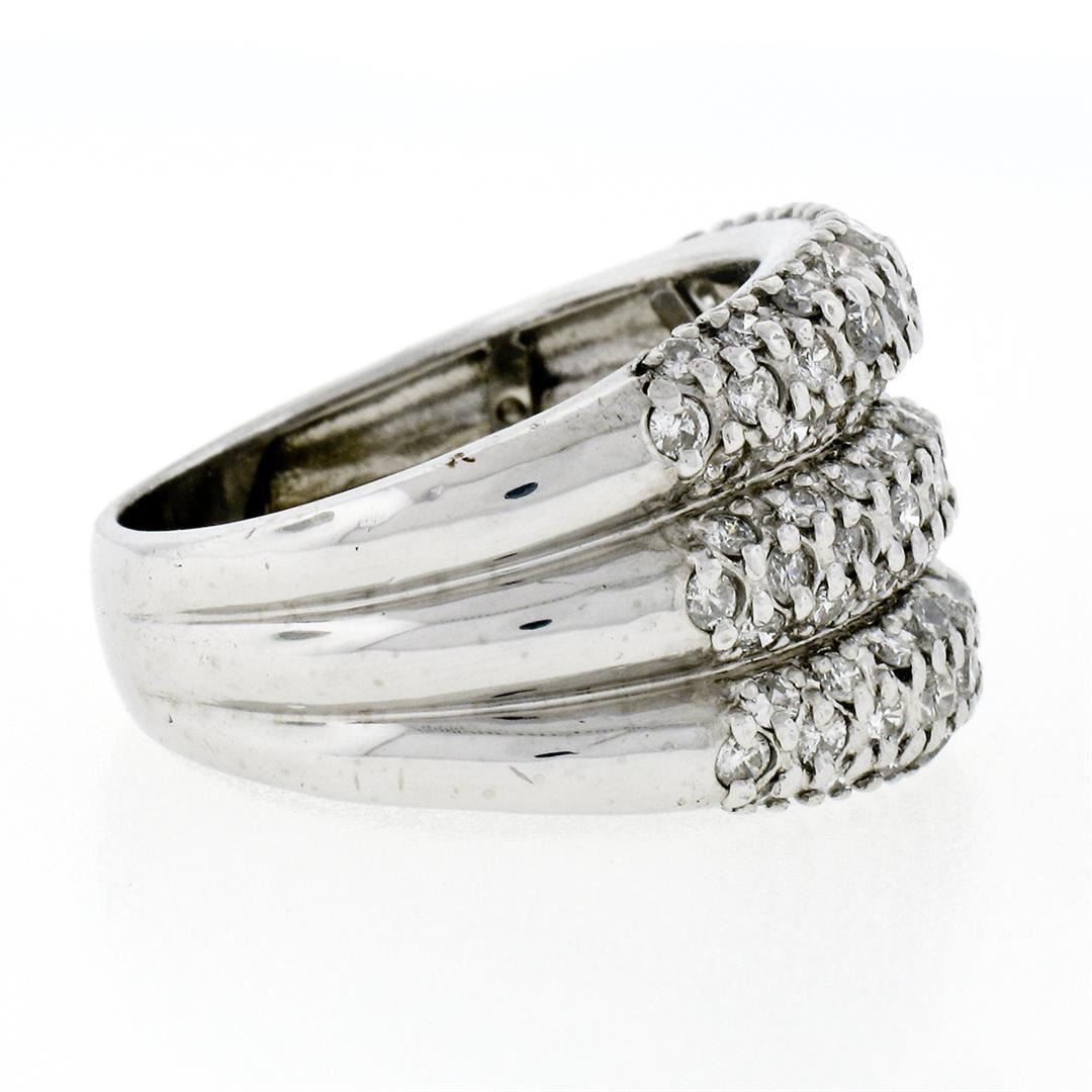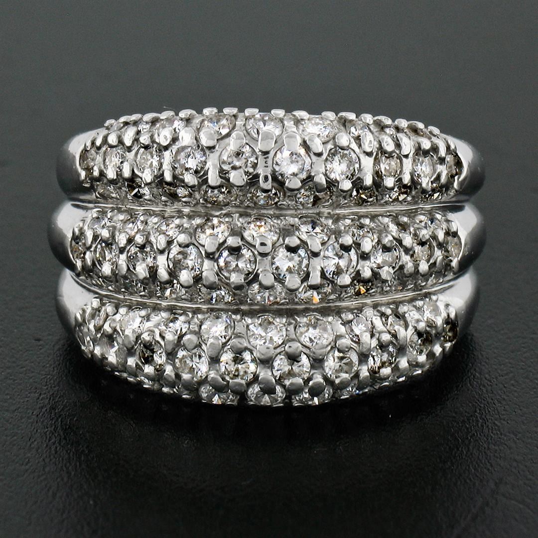 A vintage solid platinum wide band ring, with 84 old transitional cut natural diamonds (G/H- VS2/SI1; 1.30ctw). The ring is size 6.0, weighs a total of 10.50 grams, and measures 14.0mm wide.