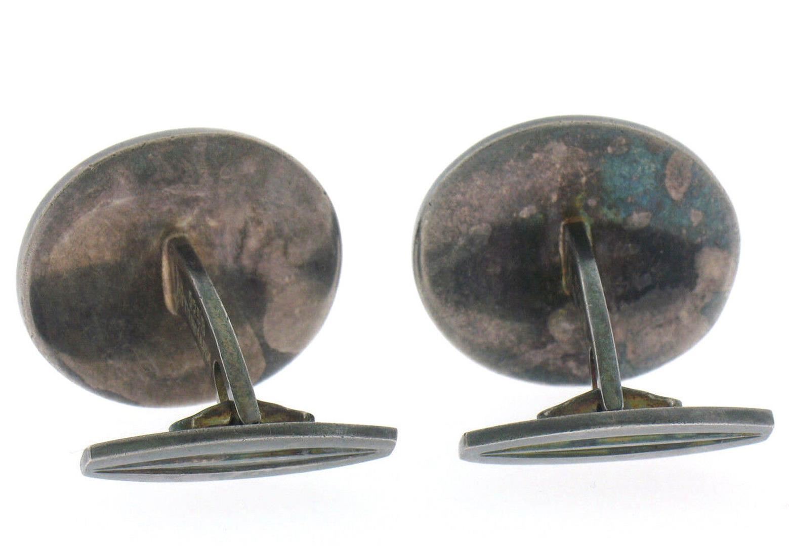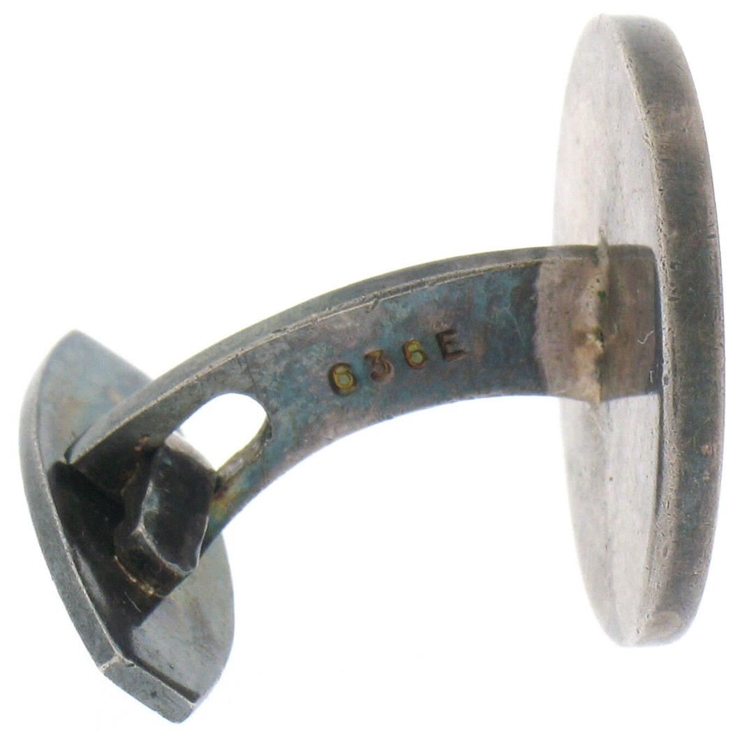 Vintage .925 Sterling Silver 1950s Hans Gustav Hansen Black Enamel Cuff Links. Please see photos and description for all available information. A vintage solid silver cufflinks by Hans Gustav Hansen, with black enamel work These cuff links have a swivel design, weigh a total of 20.60 grams, and the front panels measure 18.70x21.52mm.