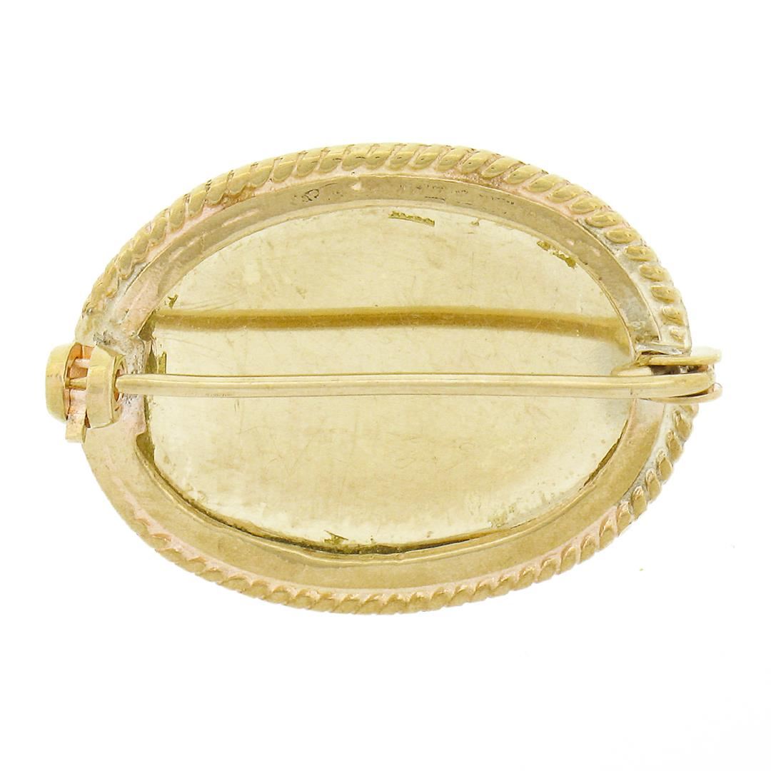 A solid 9k yellow gold pin brooch, with 1 oval shape natural amethyst (25.1x18.5mm). Measures 21.80x28mm and weighs a total of 7.21 grams.