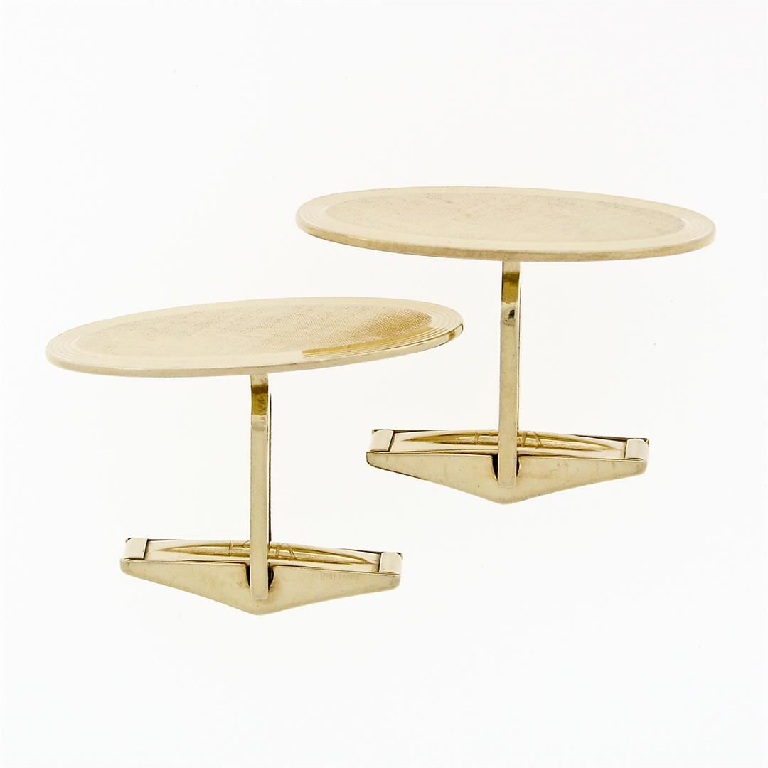 A vintage solid 14k yellow gold cufflinks. These cuff links have a swivel design with a clearance of 13.10mm, weigh a total of 8.80 grams, and the front panels measure 25.95x13.73mm.