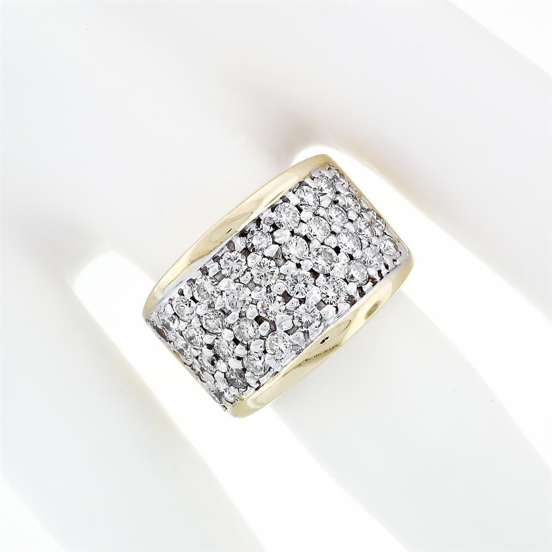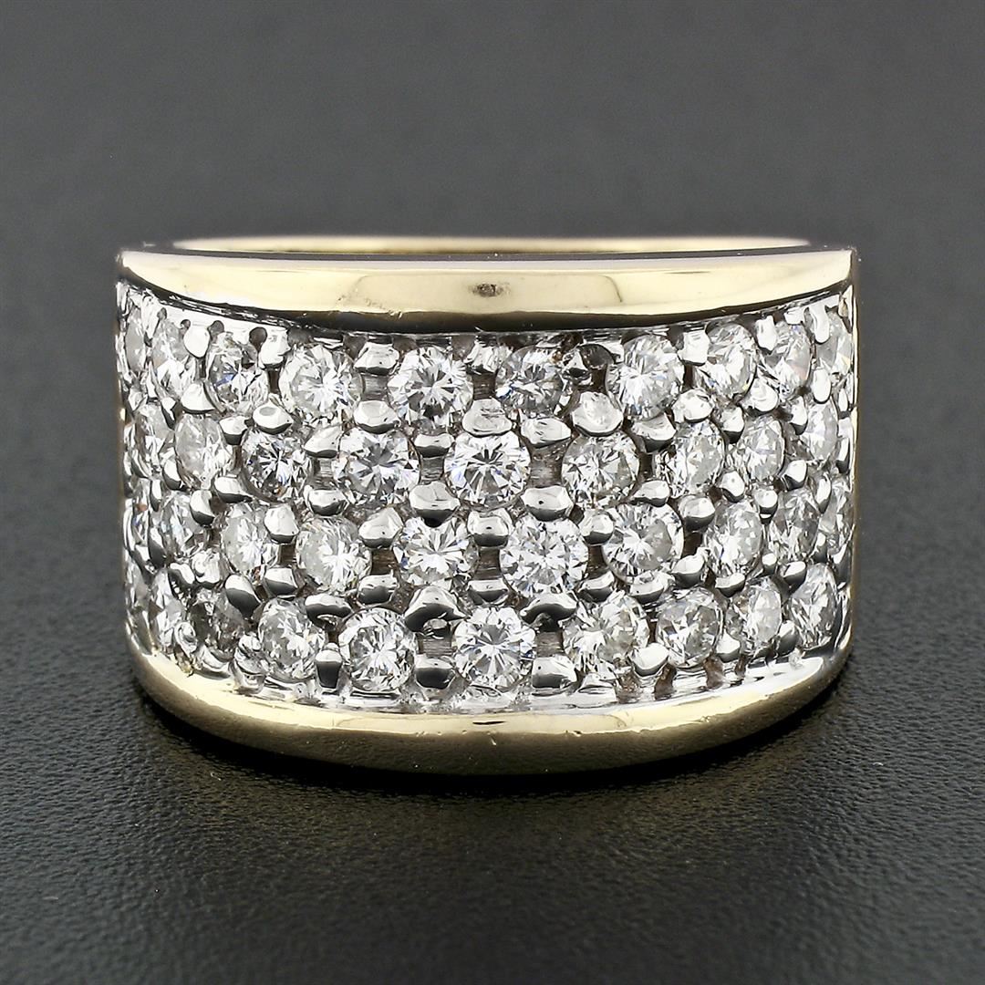 A vintage solid platinum & 14k yellow gold band ring, with 39 round brilliant cut natural brilliant cut (G/H - VS2-SI1 ; 1.56ctw). The ring is size 6.0, weighs a total of 12.07 grams, and measures 13.2mm wide.