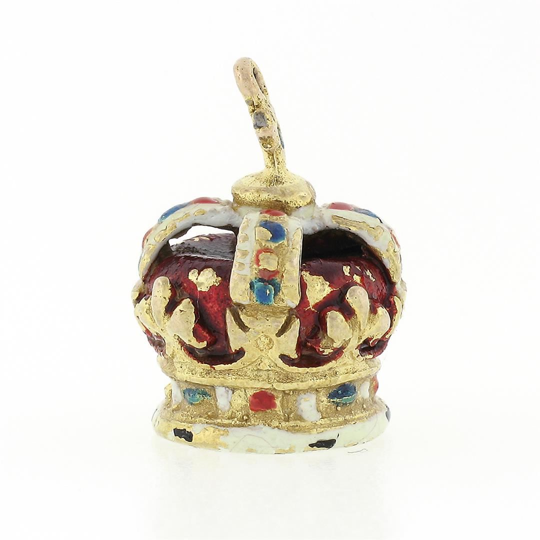 Vintage British 9K Gold Imperial State Crown w/ Multicolor Enamel Charm Pendant