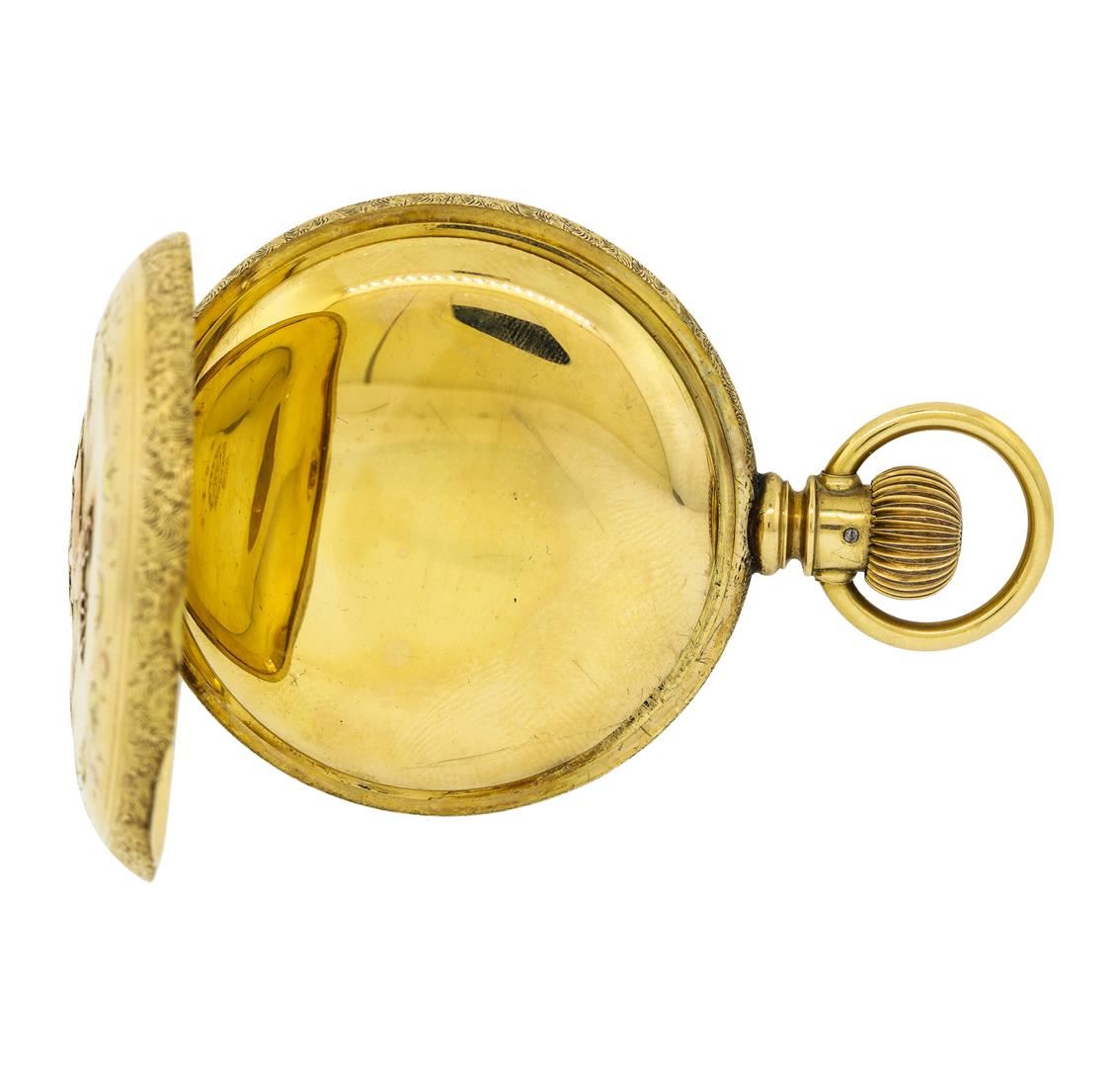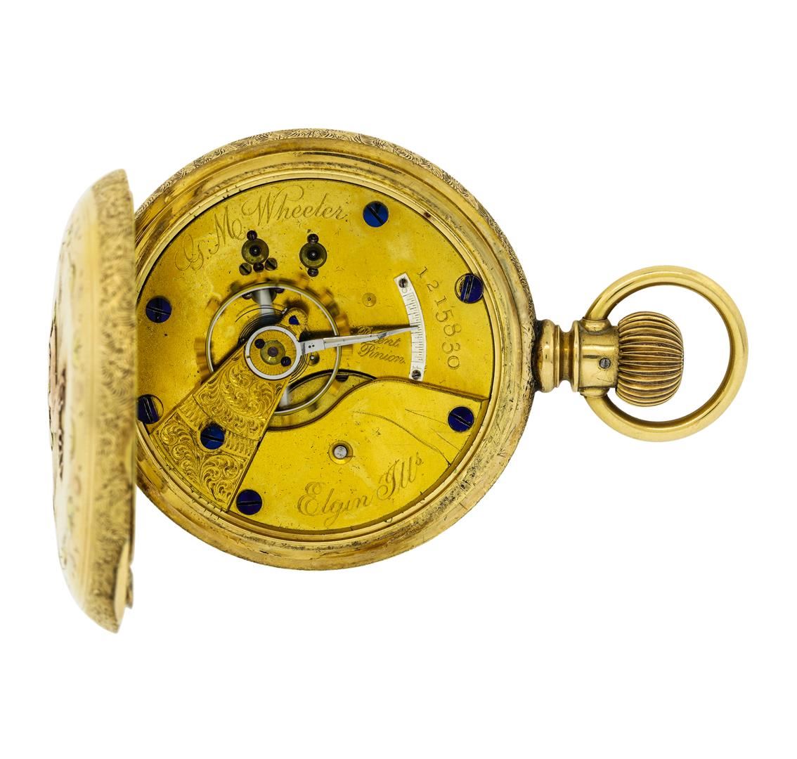 One Elgin G.M. Wheeler vintage 14KT Two Tone Gold Pocketwatch. Made in 1883, 15 Jewels, 1 of 4,000. Total Weight of Watch: 135.6.