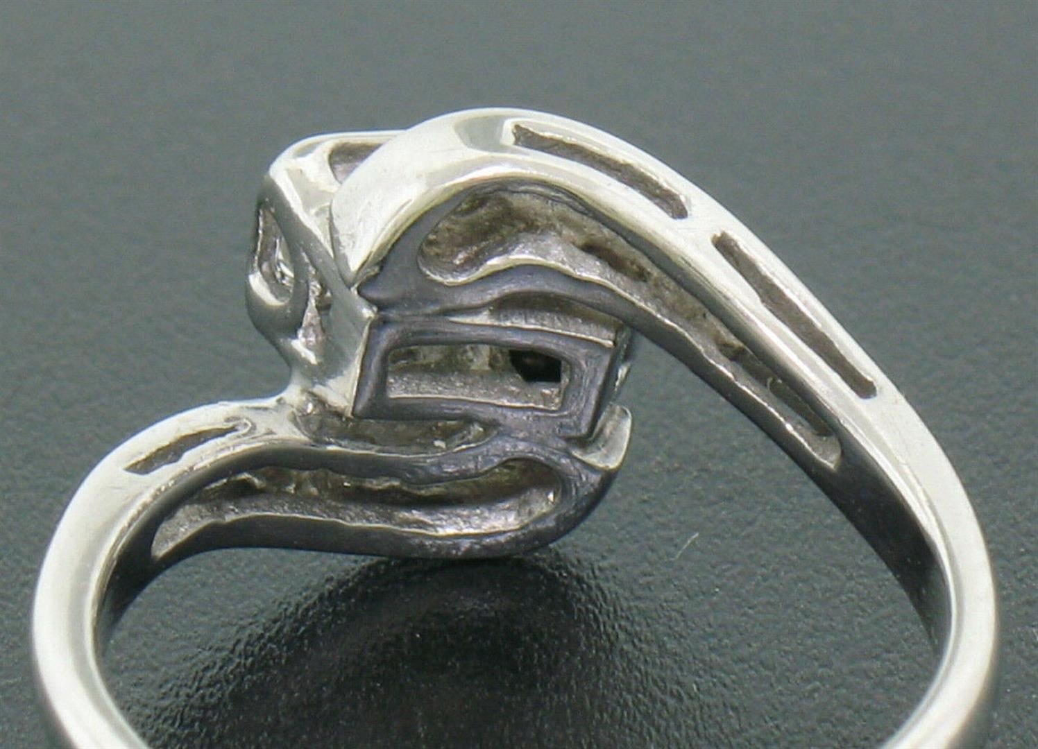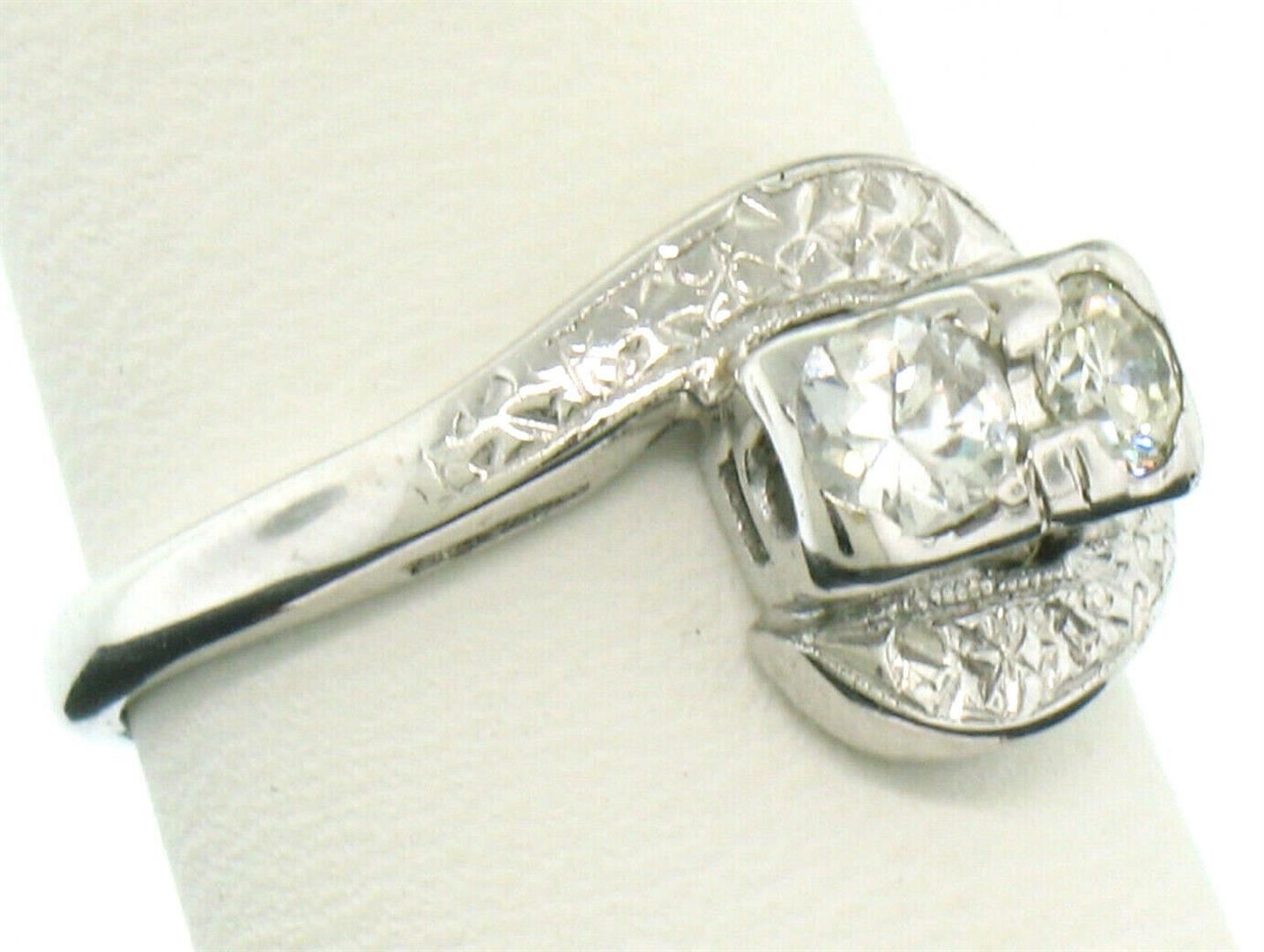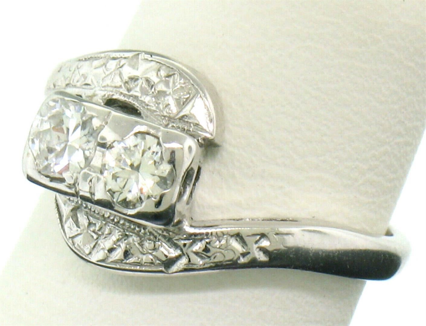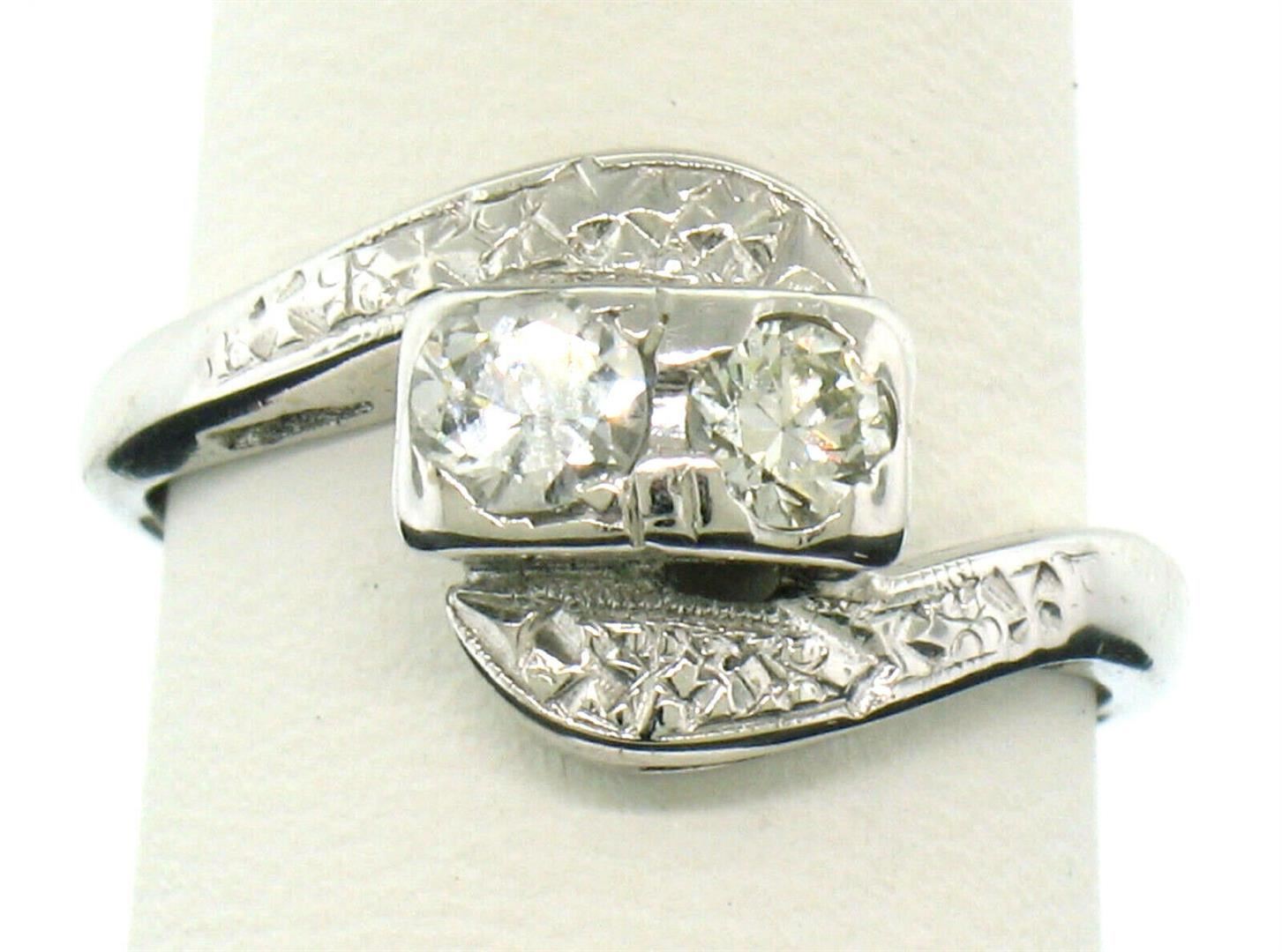 A vintage solid 14k white gold ring, featuring 2 round brilliant cut natural diamonds (G - VS1 ; 0.45ctw).The ring is size 5.0, weighs a total of 3.0 grams, and measures 10.40mm wide.