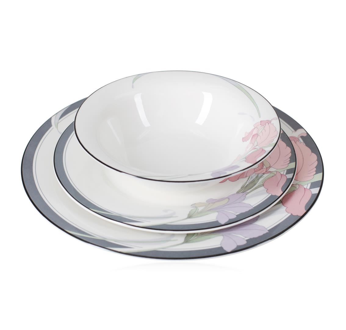 Vintage Noritake China set in the discontinued pattern "Café du Sol". This set includes the following pieces: 9 Dinner plates 10.5", 9 Salad plates 8.5", and 9 Cereal Bowls 7"