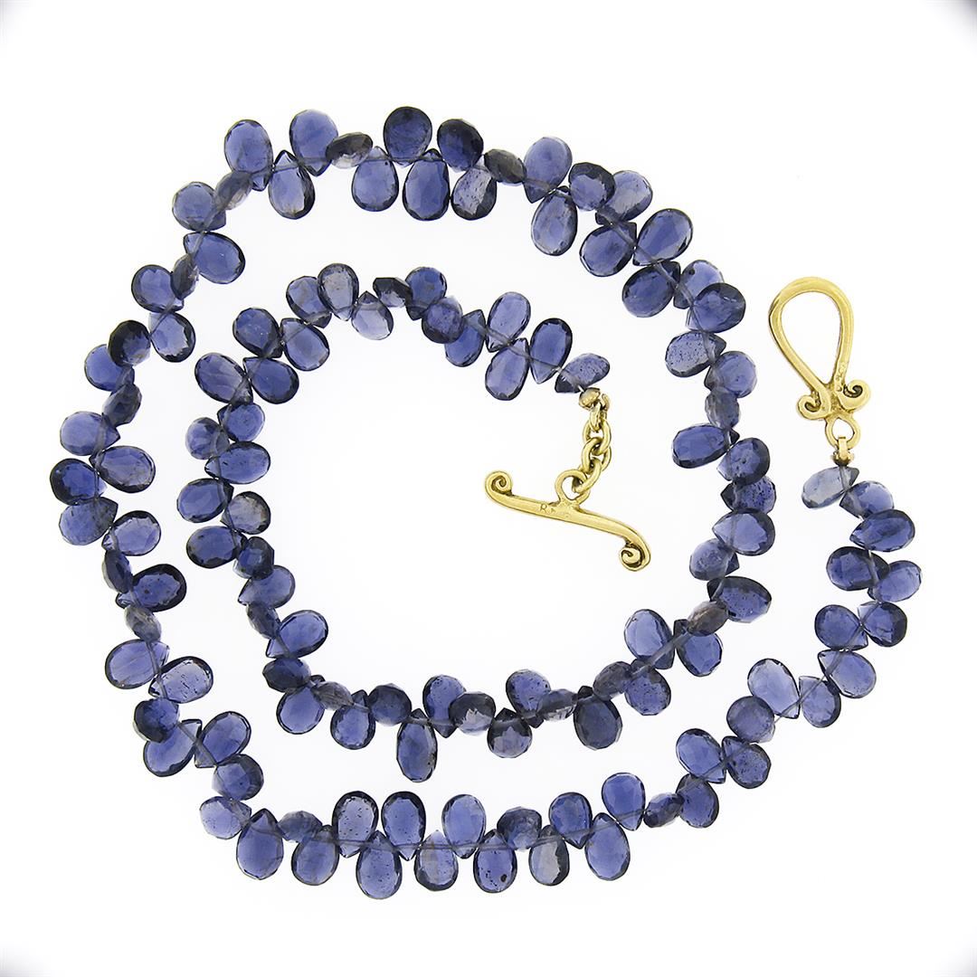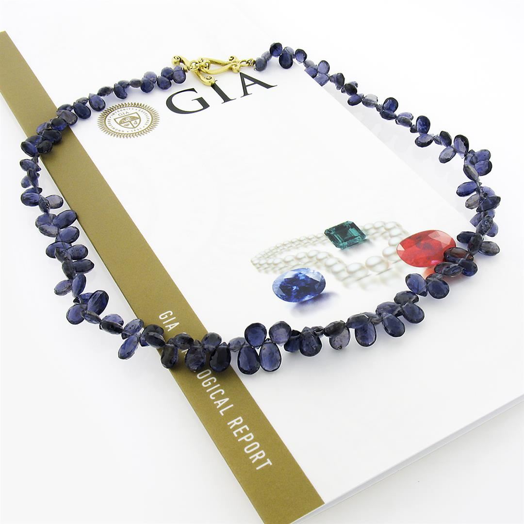 A vintage necklace with Gia certified tear drop briolette lolite. and with solid 18k yellow gold clasp. 16 inch strand link chain, 19.66 grams total weight. Comes with all original relevant certifications.