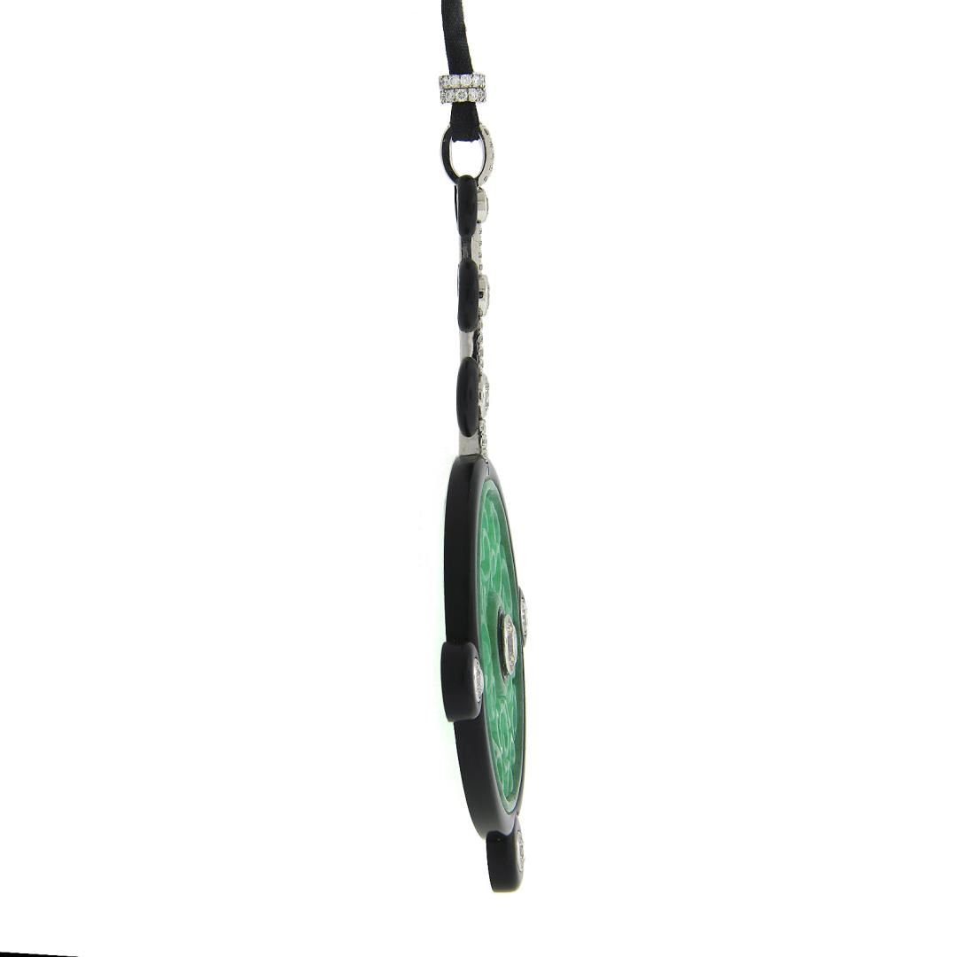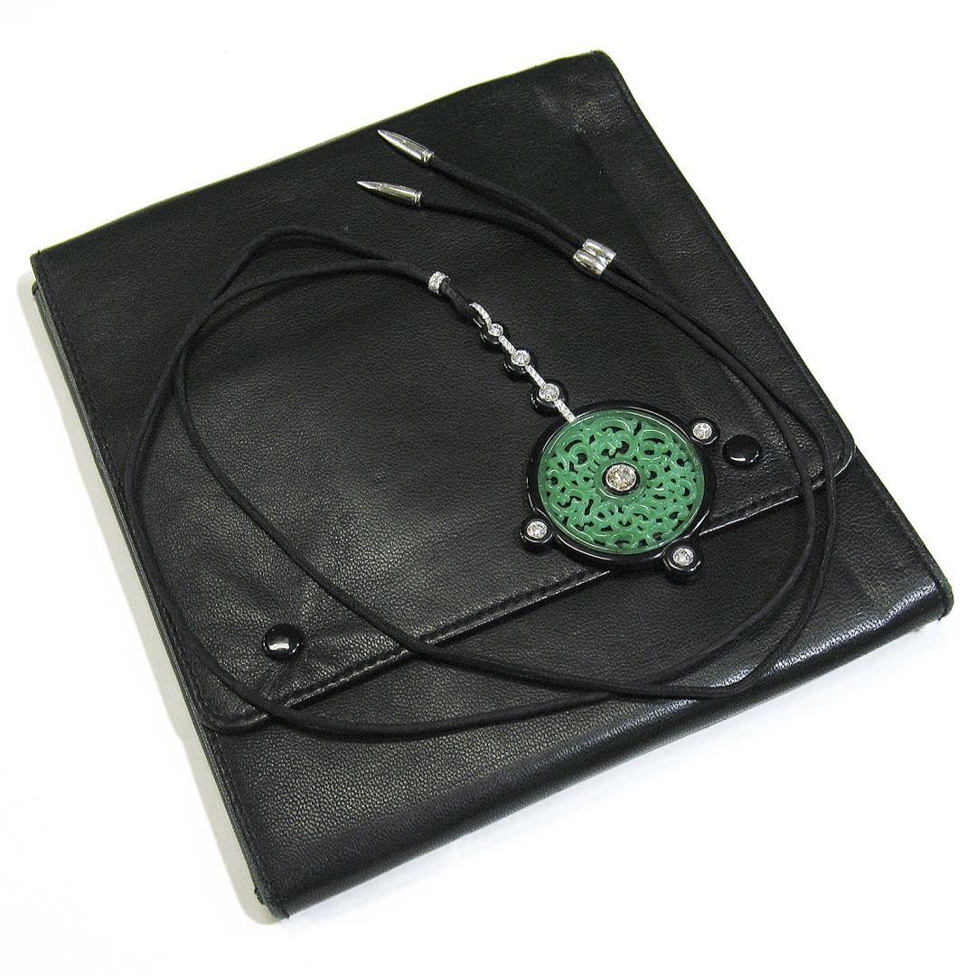 Vintage Georg Hornemann Carved Jadeite Jade Black Onyx Diamond Pendant Necklace
