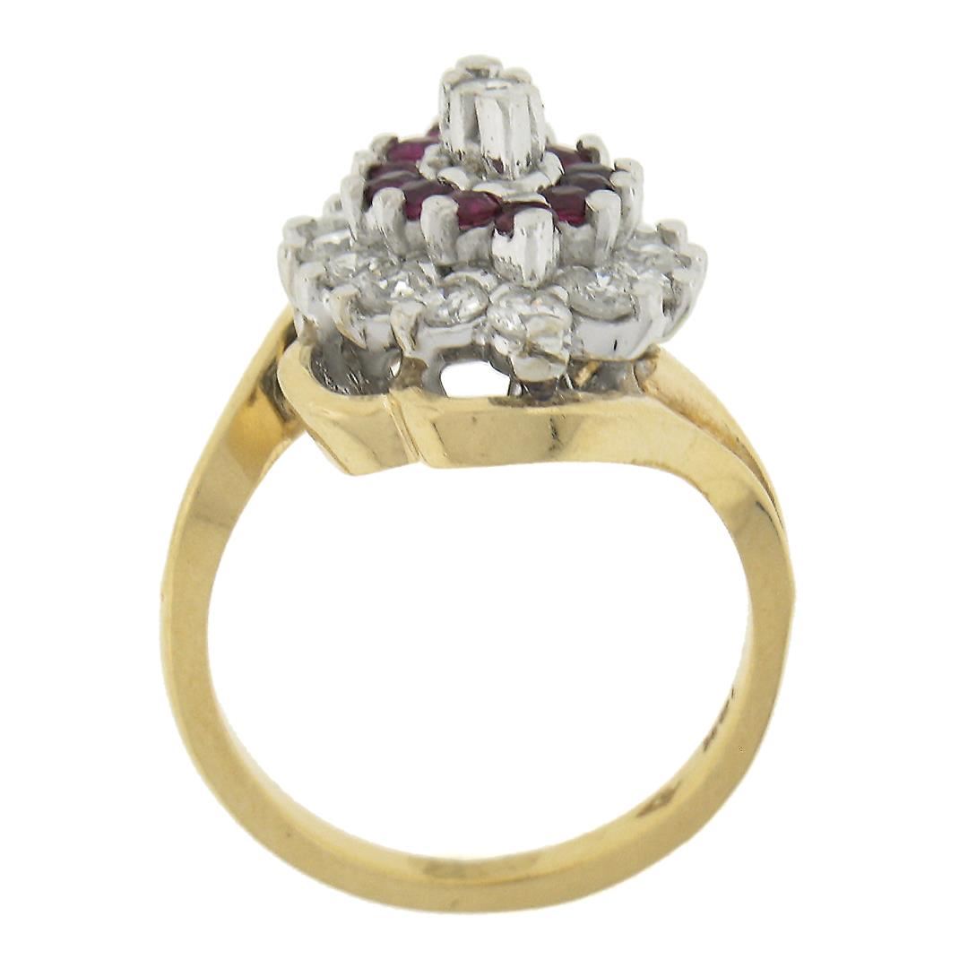 Vintage H. Stern 14K Gold 1.60 ctw Ruby & Diamond Marquise Shape Cocktail Ring