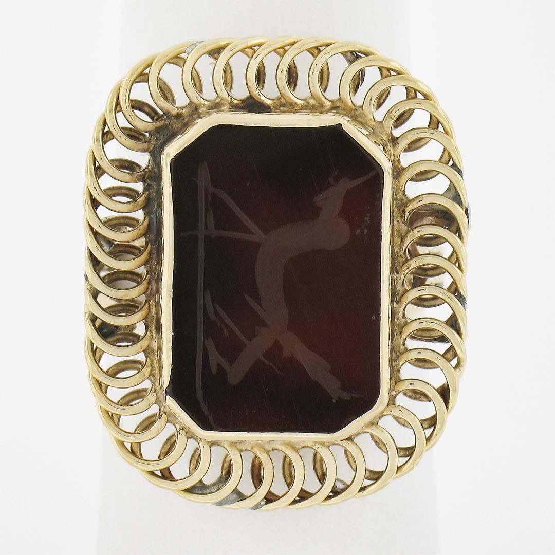 Vintage Handmade 14k Gold Rectangular Carved Intaglio Carnelian Cocktail Ring