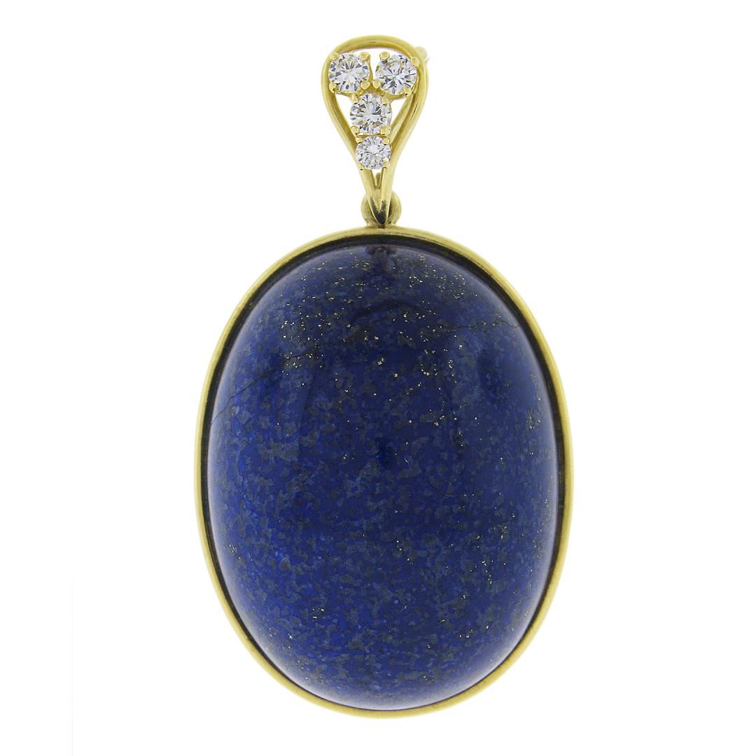 Vintage Handmade Yellow Gold Domed Oval Polished Lapis w/ Diamond Bail Pendant