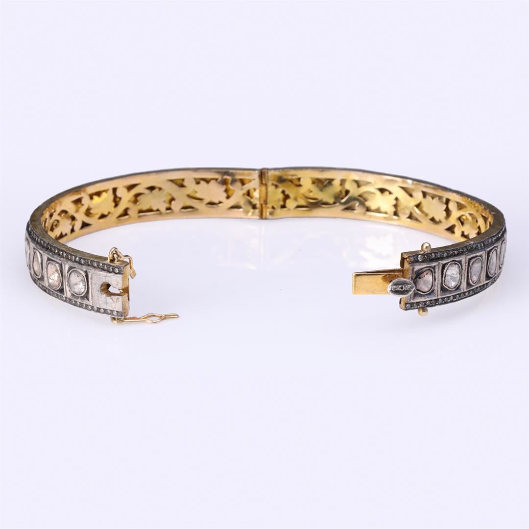 Vintage Indian Gold Topped Silver Polki & Diamond Slice Bangle. Total weight of 33.2 gm. Estimated retail value $800.