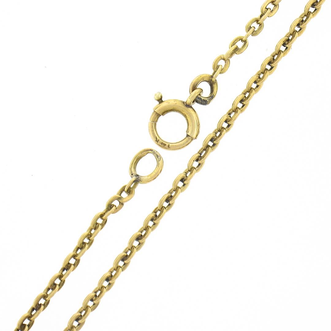 A vintage solid 14k yellow gold chai pendant necklace. 16 inch cable link chain, 6.13 grams total weight, pendant measures 38.90x33.50mm.