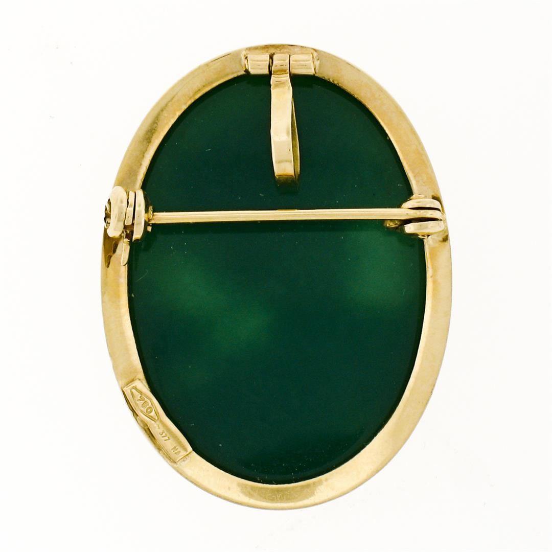 A vintage solid 18k yellow gold brooch pendant, with 1 oval shape carved natural agate ( 25.0x18.0mm). Measures 27.40x20.60mm and weighs a total of 5.77 grams.
