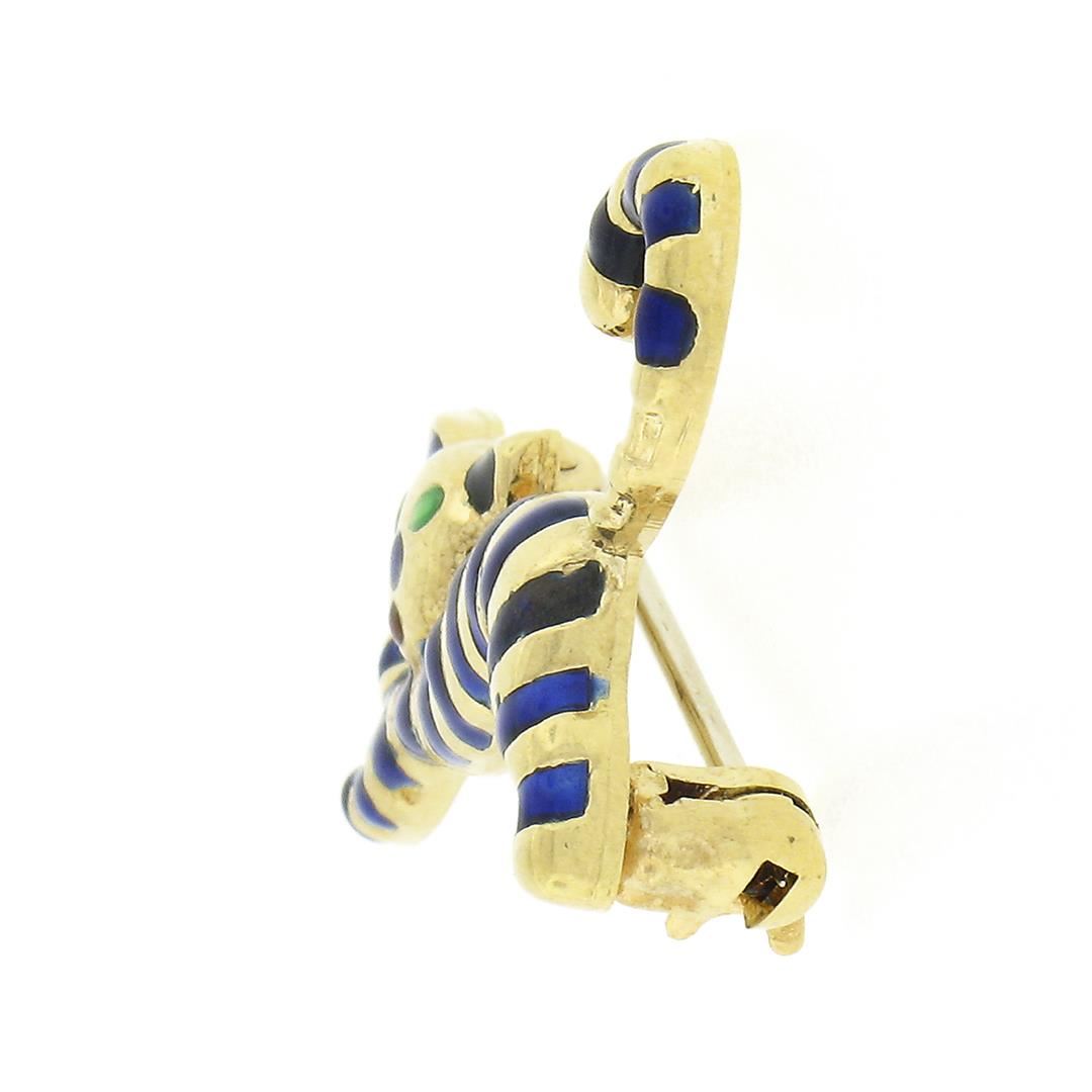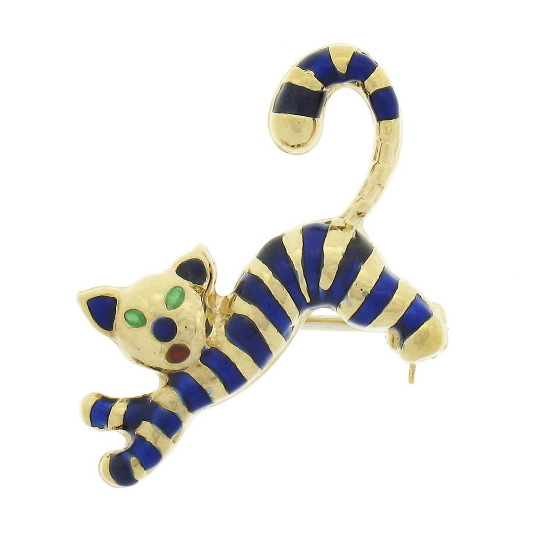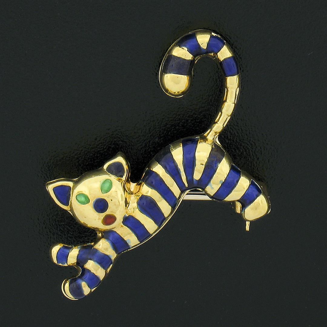 A vintage Italian solid 18k yellow gold tiger brooch, with enamel work. Measures 19.85x27.20mm and weighs a total of 3.24 grams.