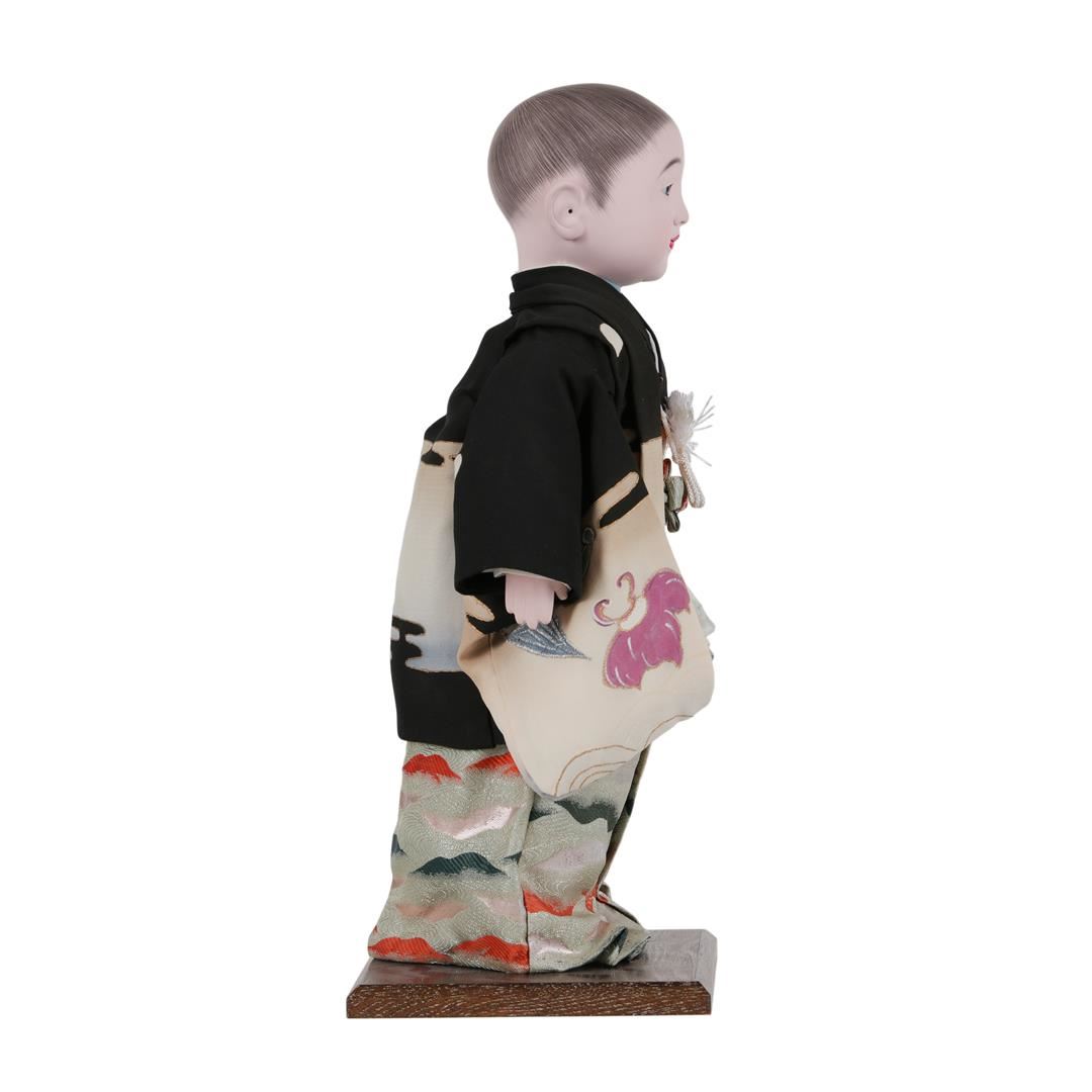 Vintage Japanese doll with hand painted face, measures approximately 17 inches tall overall.