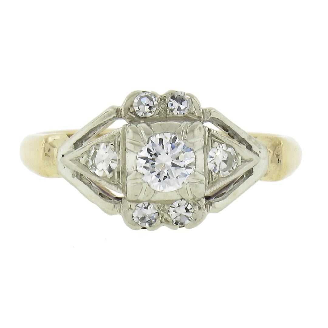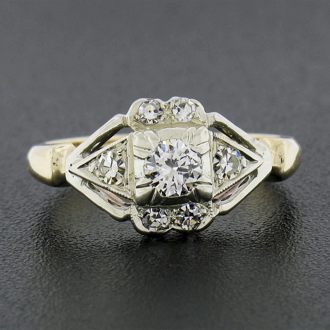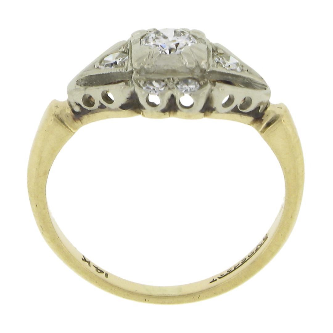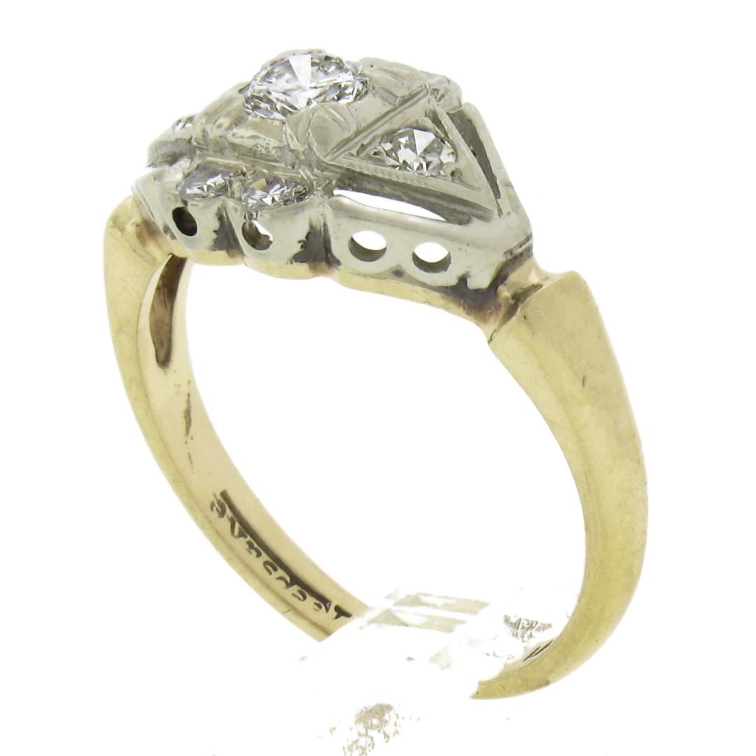 Vintage Keepsake 14k Two Tone Gold 0.36 ctw Diamond Open Work Geometric Ring