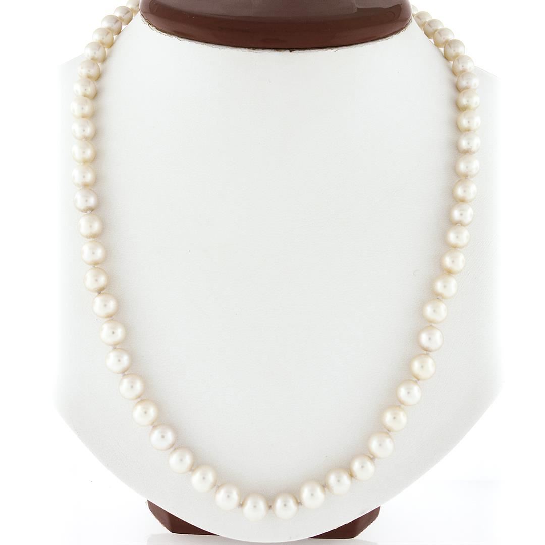 A vintage strand necklace with 14k yellow gold clasp, featuring 102 round shape cultured pearls (6.5mm to 7mm each), and numerous of round brilliant cut natural diamonds (G/H - VS1/VS2 ; 1.50ctw). 31 inch strand link chain, 51.8 grams total weight, clasp measures 13.20mm.