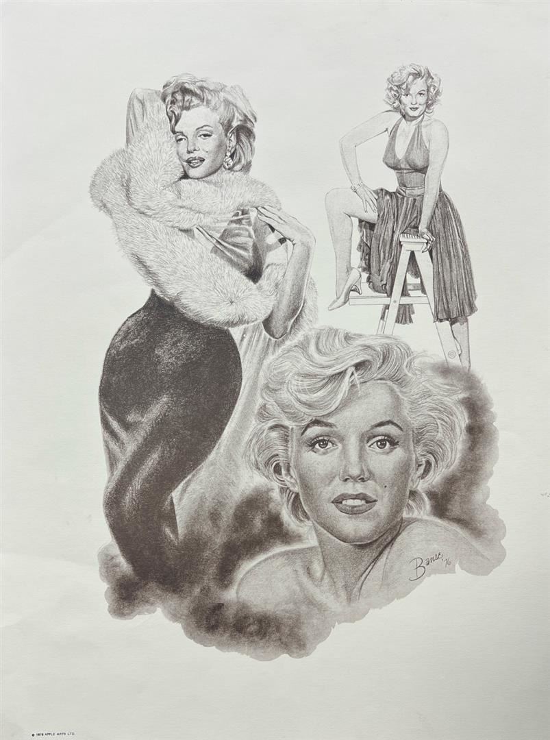 Vintage Marilyn Monroe by Banse, Glen. Open Plate Signed Lithograph. Stain on Border. Dimensions: 26 x 20. As Is.