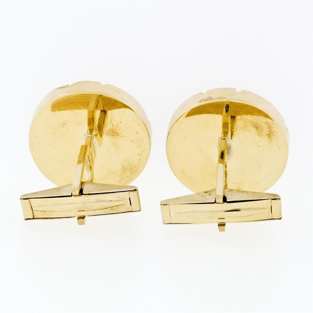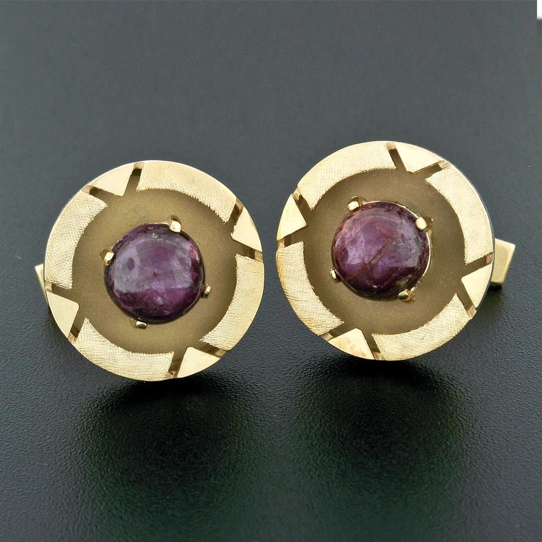 Vintage Men's 14K Gold Star Ruby Florentine Large Open Round Geometric Cufflinks