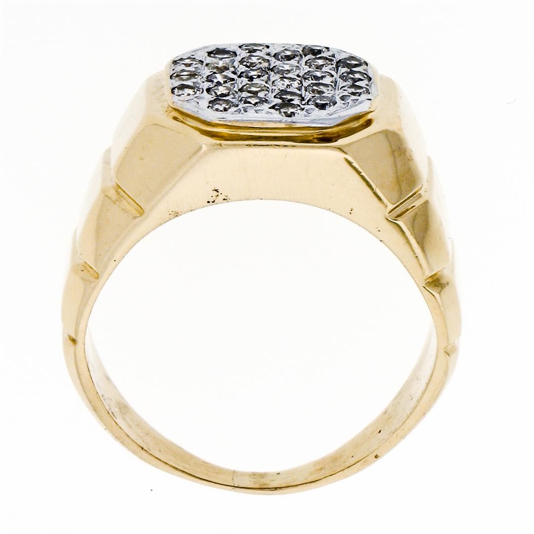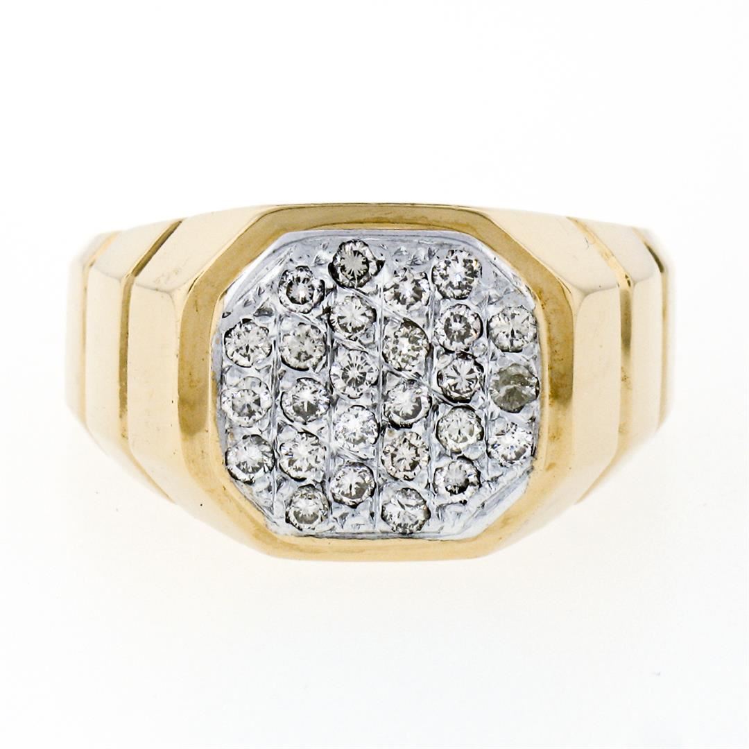 A vintage solid 14k yellow and white gold ribbed mens ring, with 26 round brilliant cut natural diamonds (G/H - VS2/SI1 ; 0.52ctw). The ring is size 9.5, weighs a total of 8.50 grams, and measures 12.90mm wide.