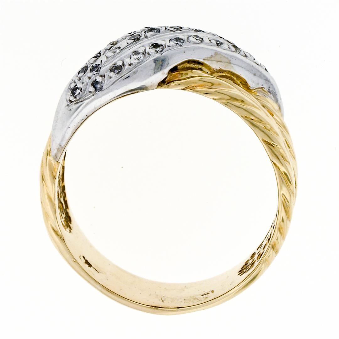 A vintage solid 14k white and yellow gold cable wide ring, with 30 round brilliant cut natural diamonds (H/I- SI1/SI2 ; 0.30ctw). The ring is size 10.5, weighs a total of 12.28 grams, and measures 13.0mm wide.