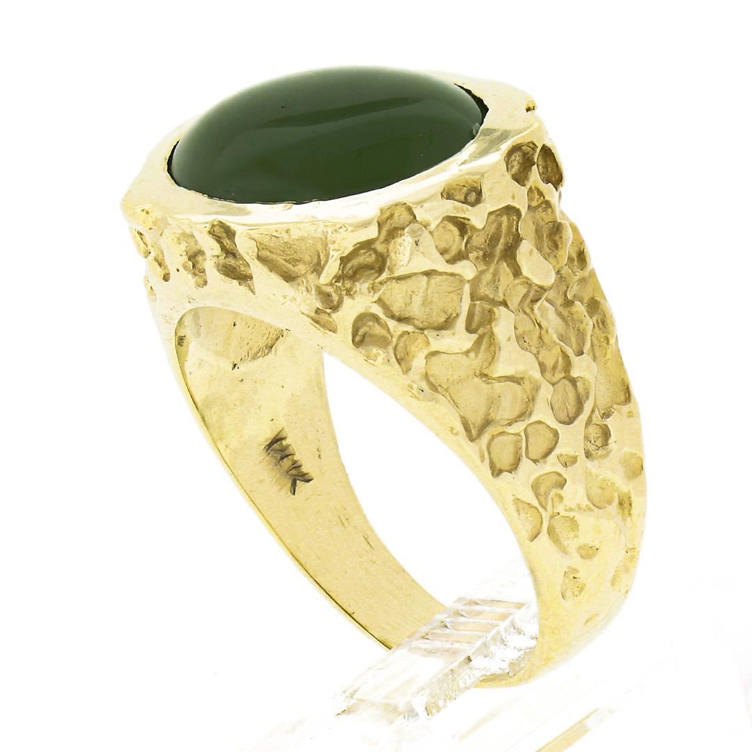 Vintage Mens 14K Yellow Gold Oval Cabochon Green Jade Sideways Nugget Band Ring