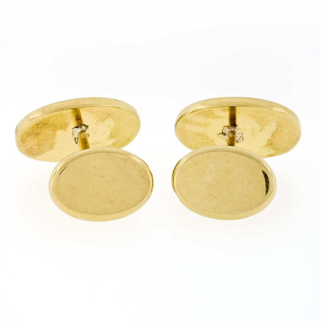 A vintage solid 18k yellow gold green black guilloche enamel cufflinks, with These cuff links have a swivel design with a clearance of 13mm, weigh a total of 16.77 grams, and the front panels measure 13.1x18.65mm.