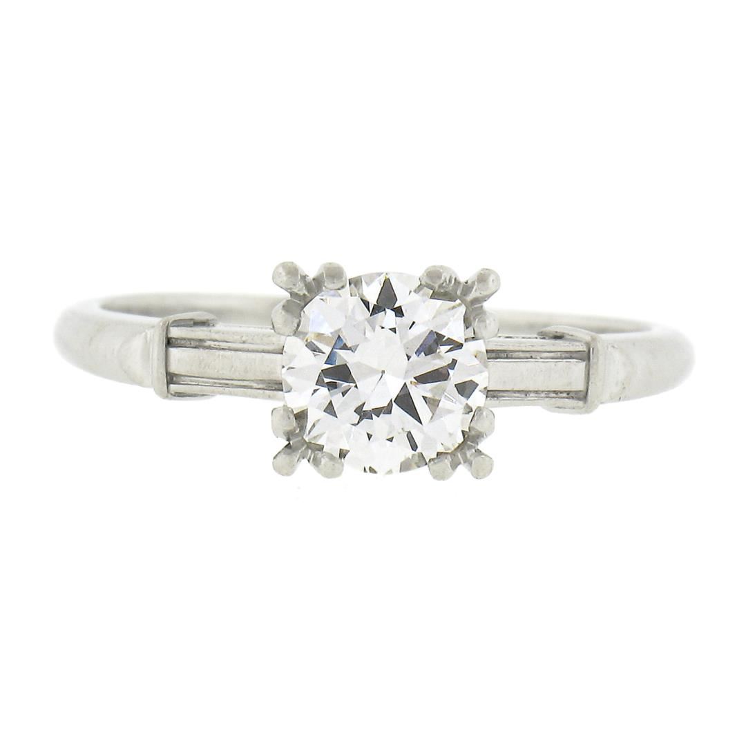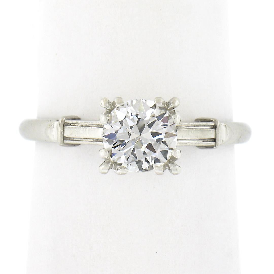 Vintage Platinum 0.75ct Old Cut Fiery Diamond in Square Basket Engagement Ring