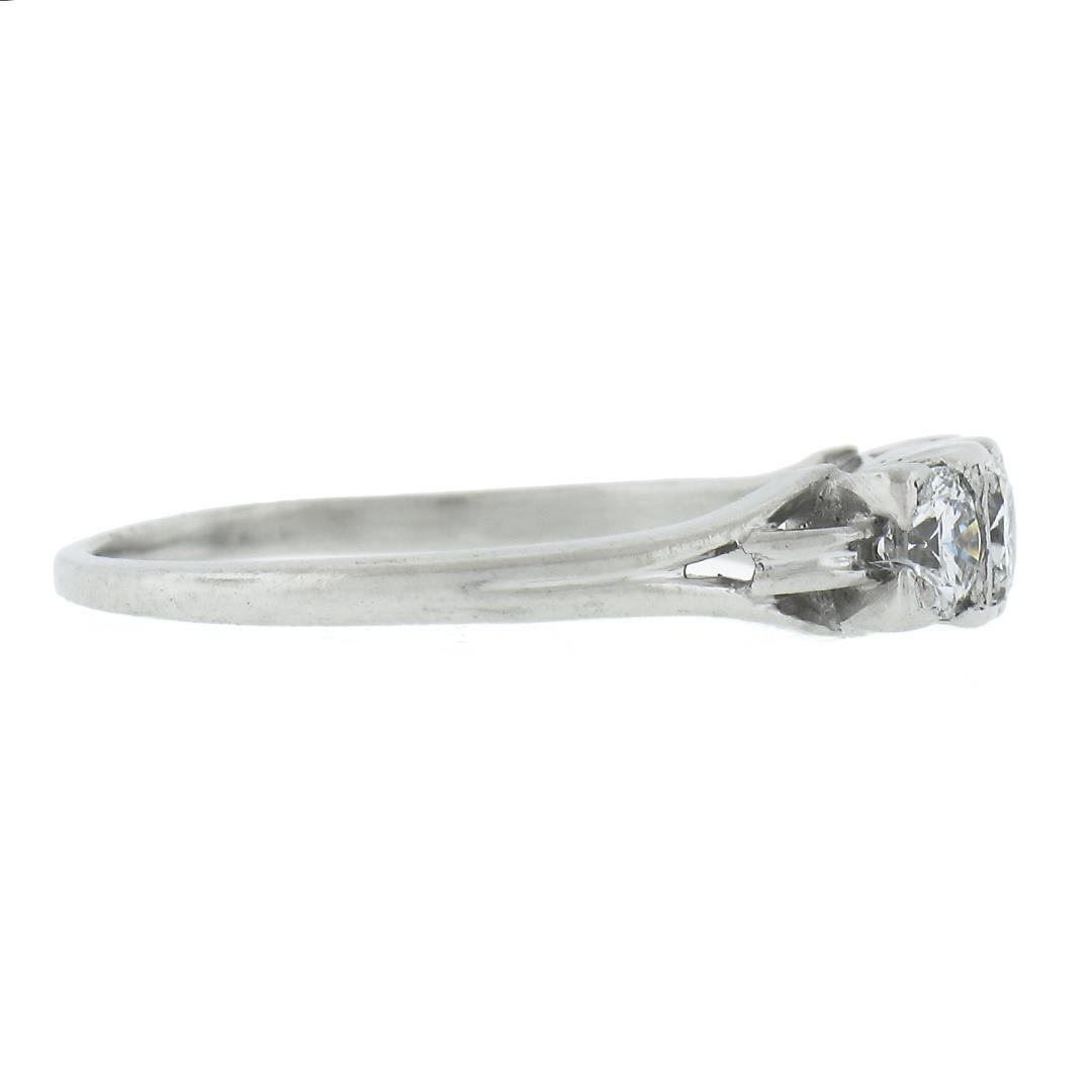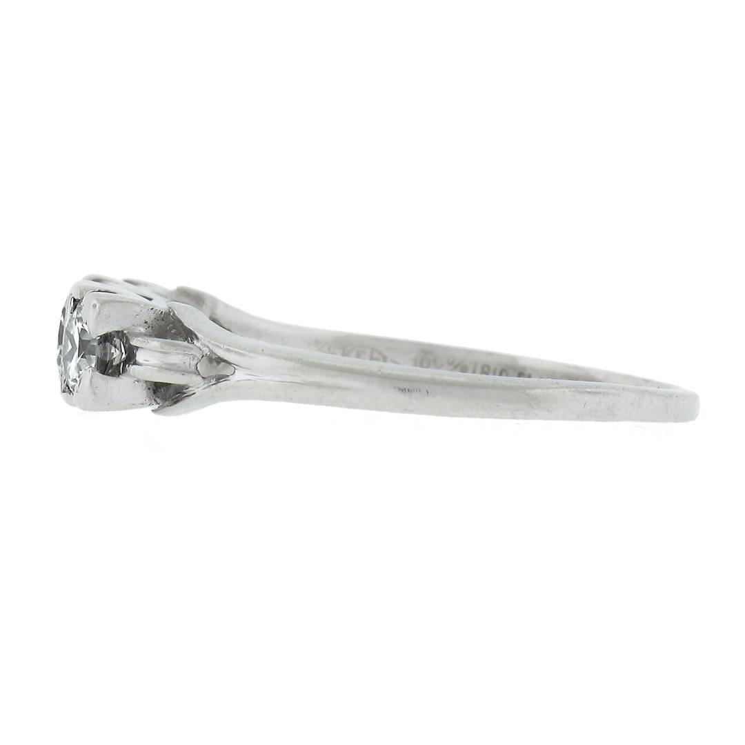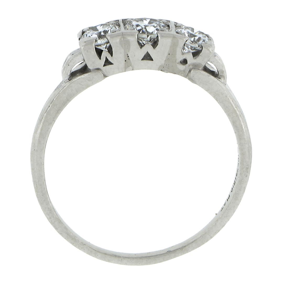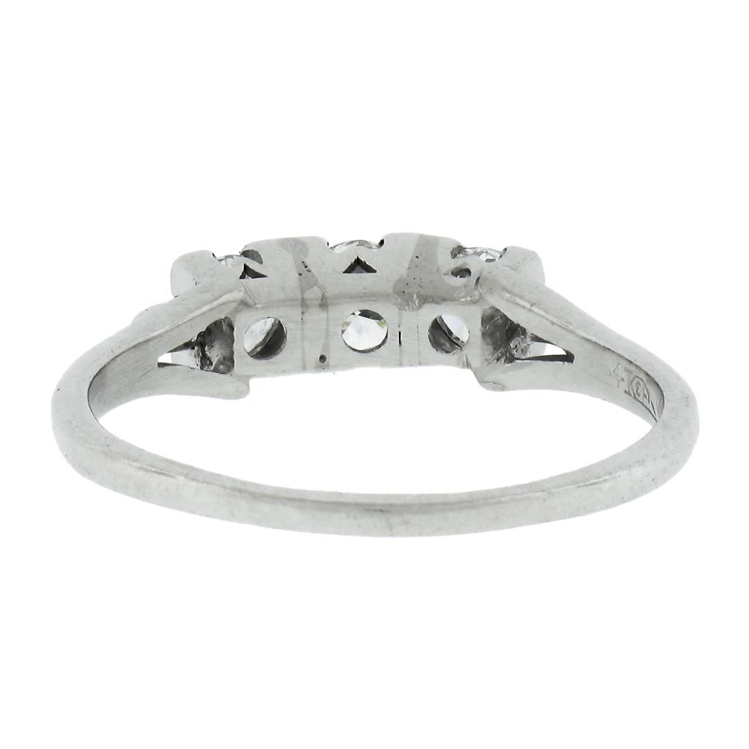 A vintage solid paltinum band ring, featuring 3 old transitional cut natural diamonds (F/G - VS1/VS2 ; 0.80ctw). The ring is size 9.5, weighs a total of 4.79 grams, and measures 4.8mm wide.