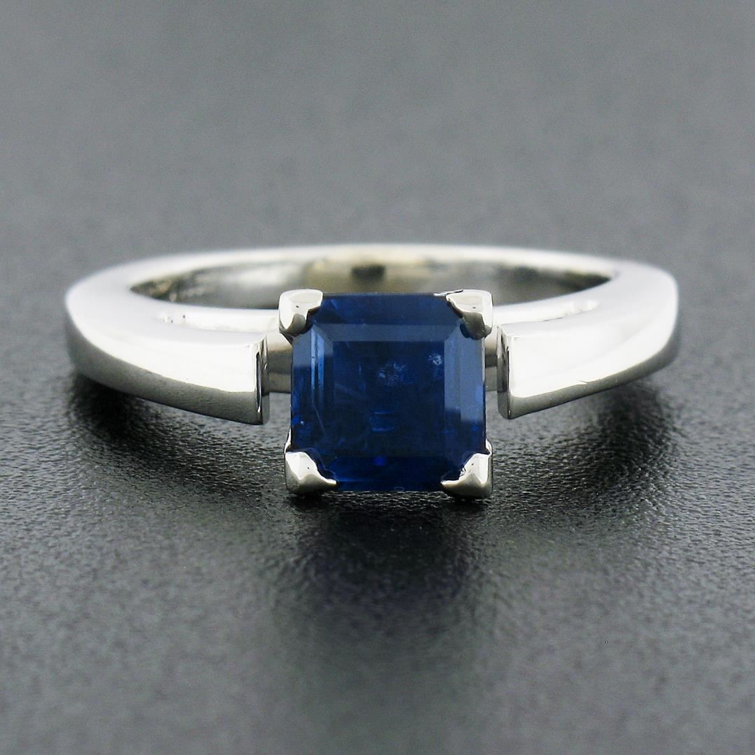 Vintage Platinum 1.05 ctw Square Step Cut Prong Set Sapphire Solitaire Ring